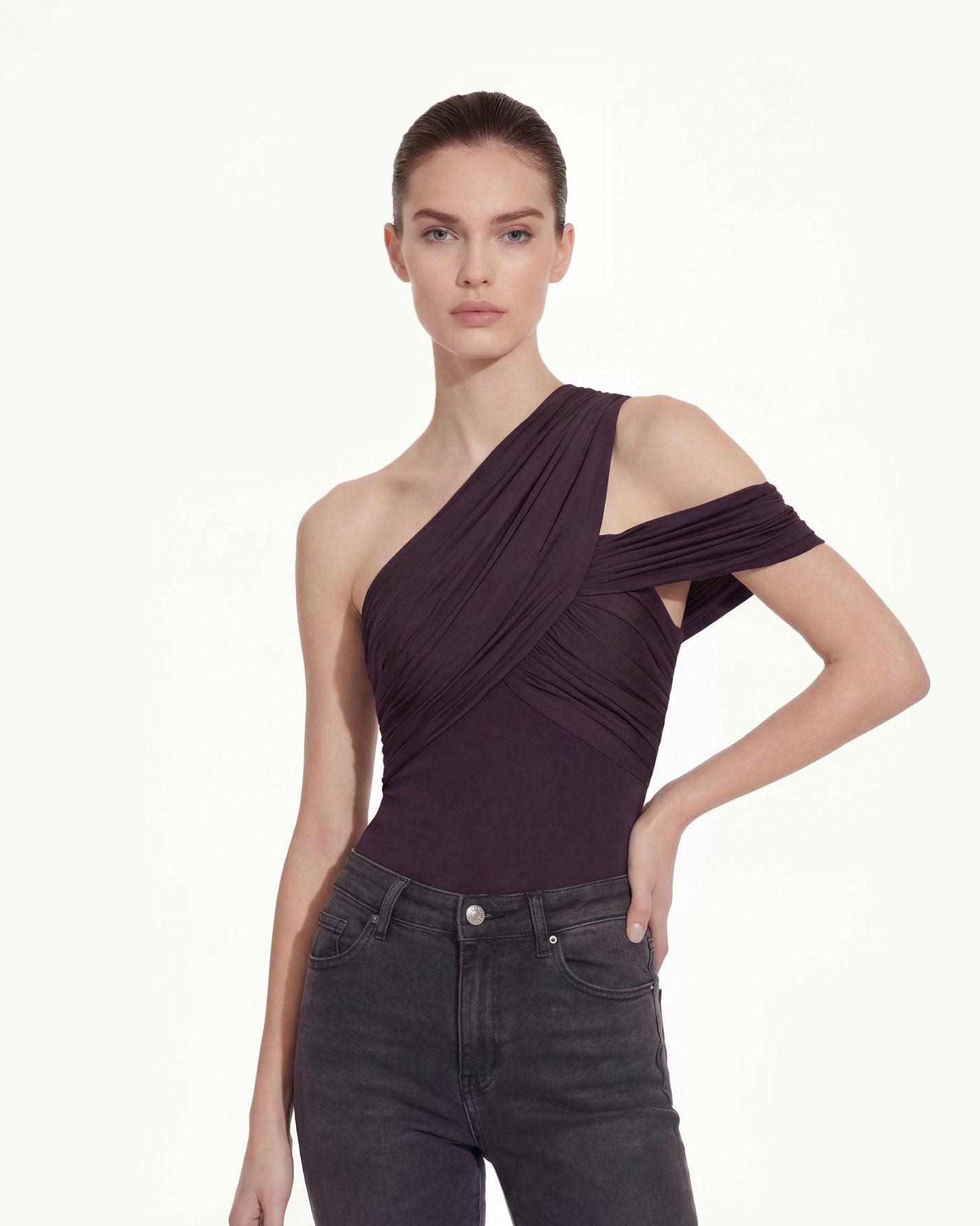 Top monospalla asimmetrico arricciato - Bordeaux