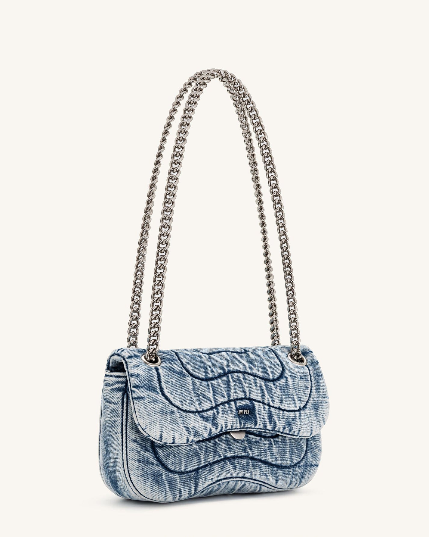 Tracolla con catena trapuntata in denim Tina - Blu