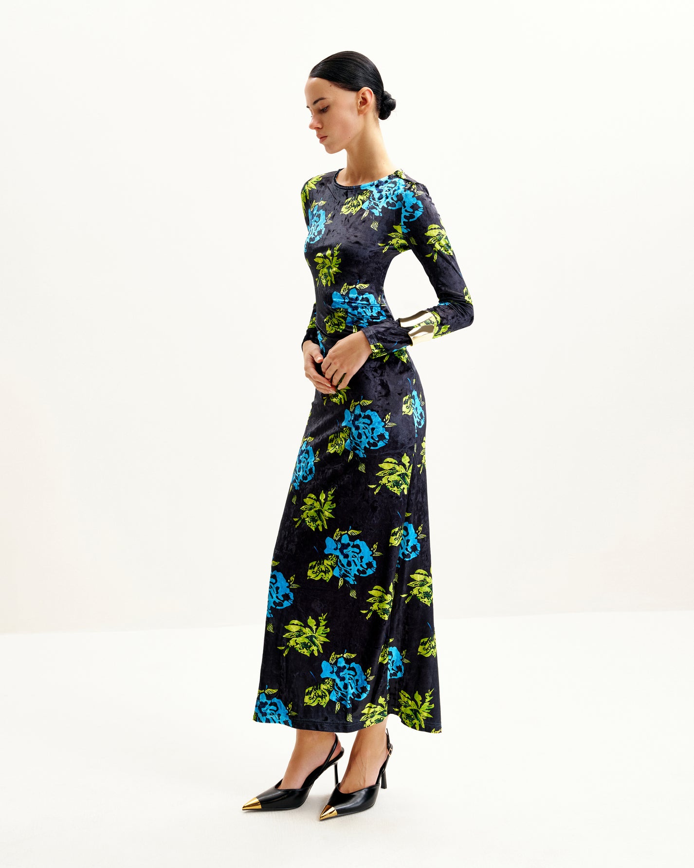 Zoe Abito Lungo a Maniche Lunghe con Fantasia Floreale - Multicolore
