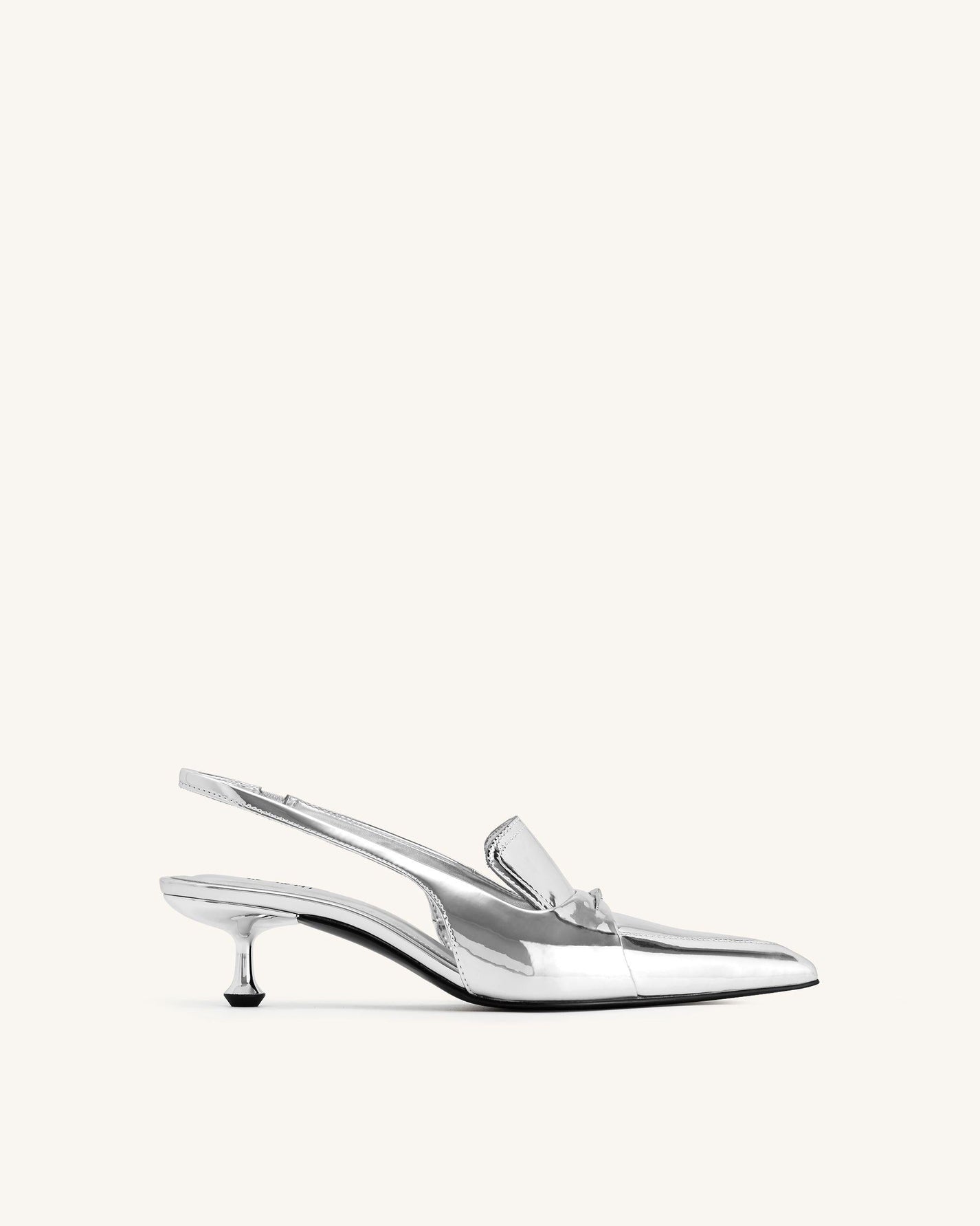 Carla Décolleté con Tacco Gattino Metallico - Argento