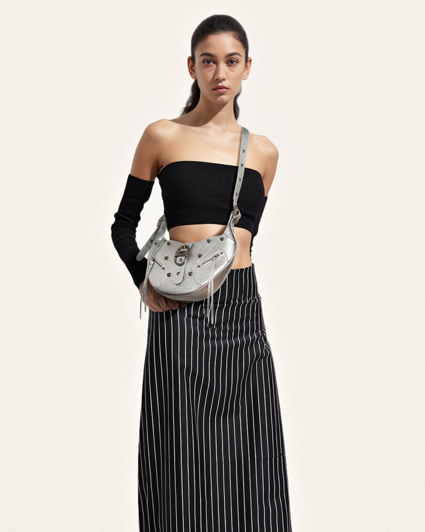 Borsa a tracolla con pieghe metalliche Tessa - Argento