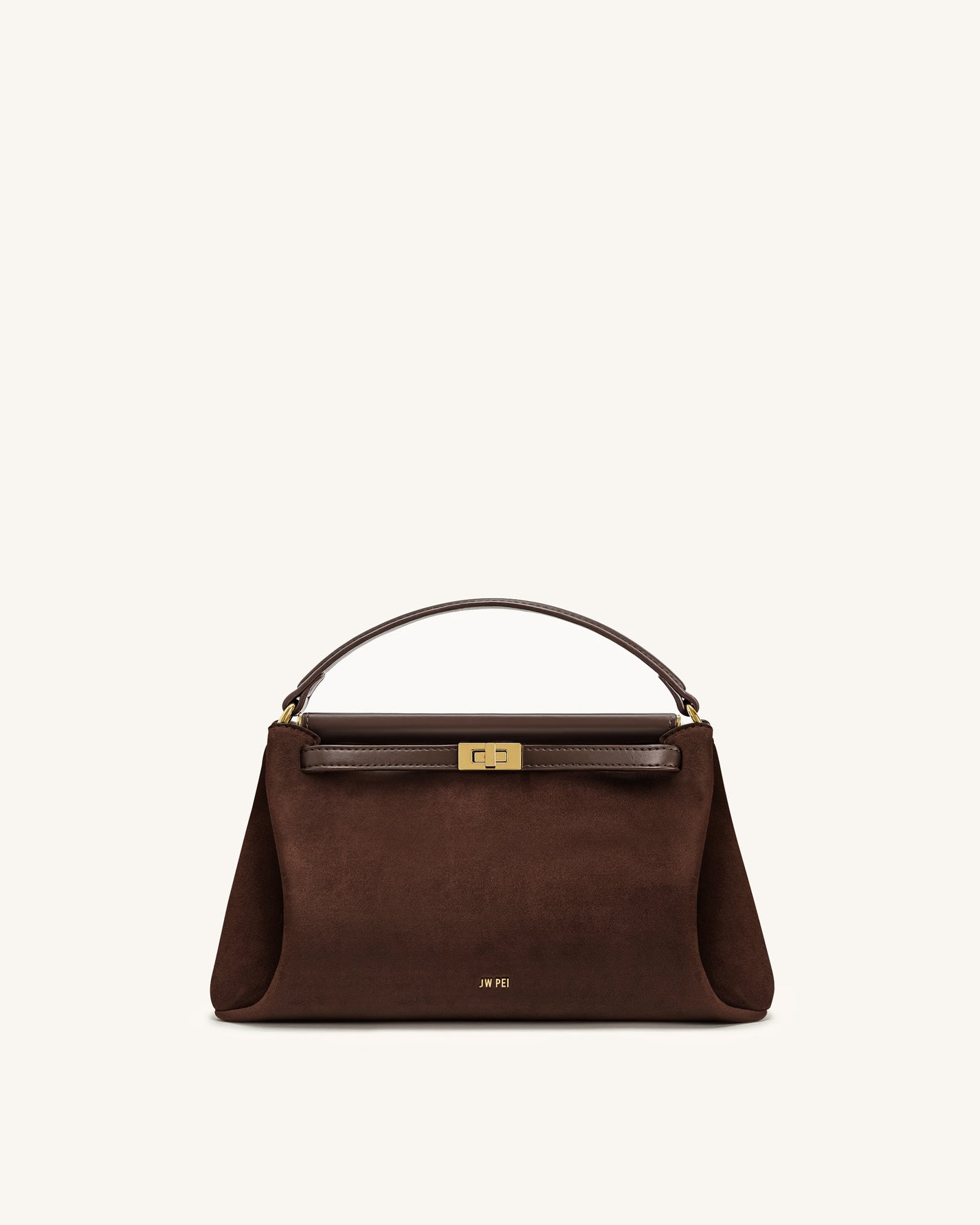 Borsa con manico Carmen in similpelle scamosciata - Marrone scuro