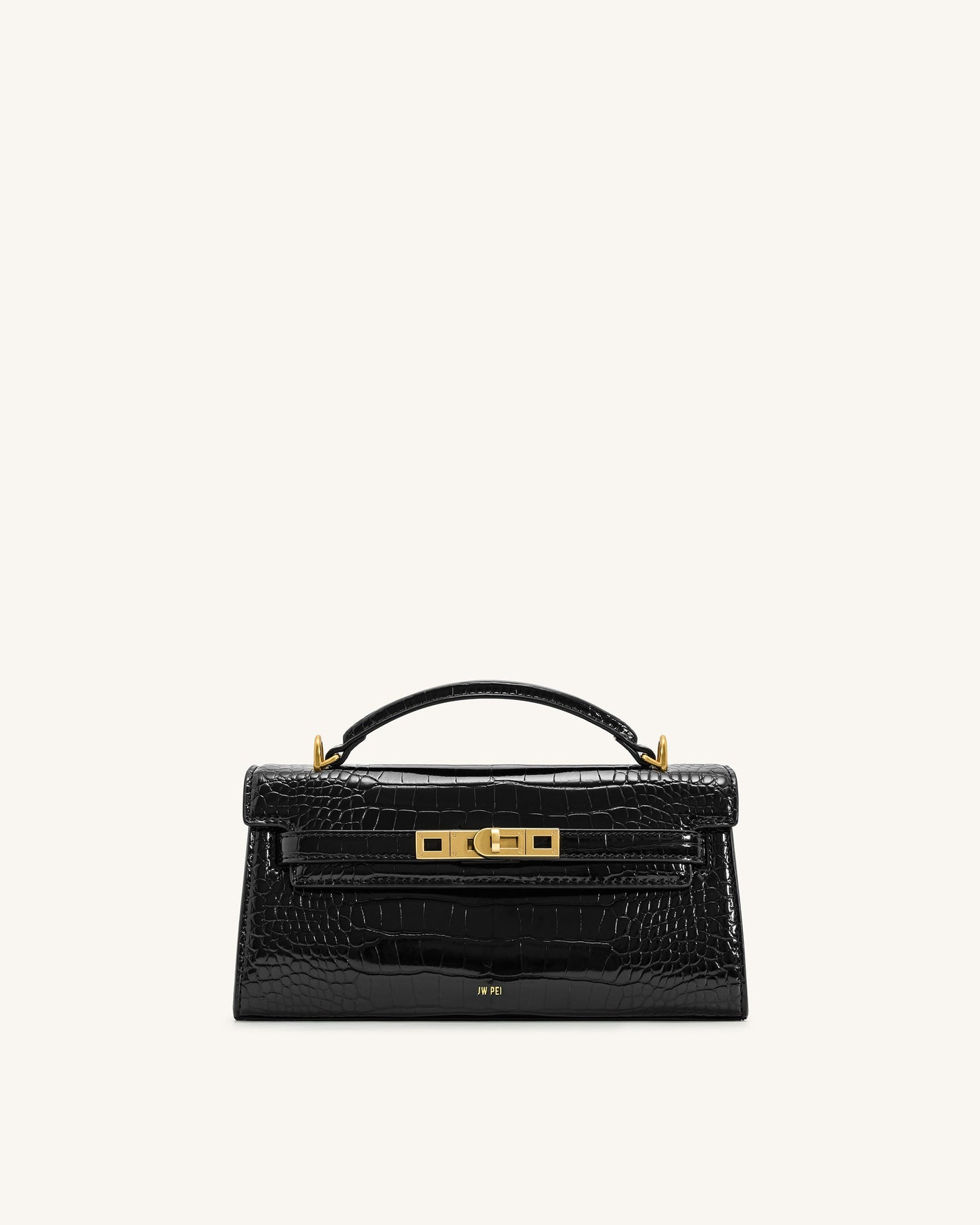 Borsa Cleo a forma di scatola con manico superiore - Croco nero