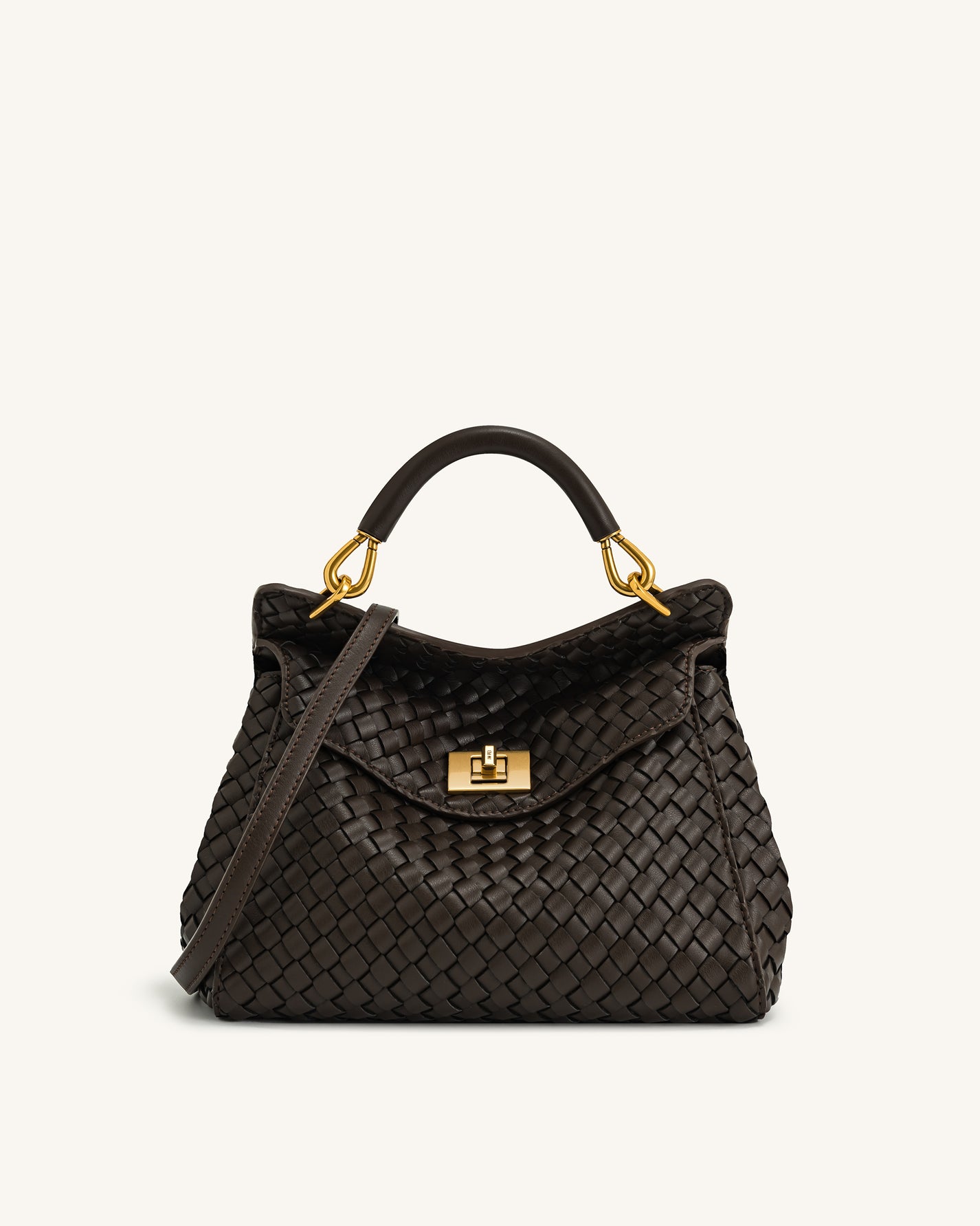 Lucia Borsa Classica Intrecciata con Manico Superiore - Marrone Scuro