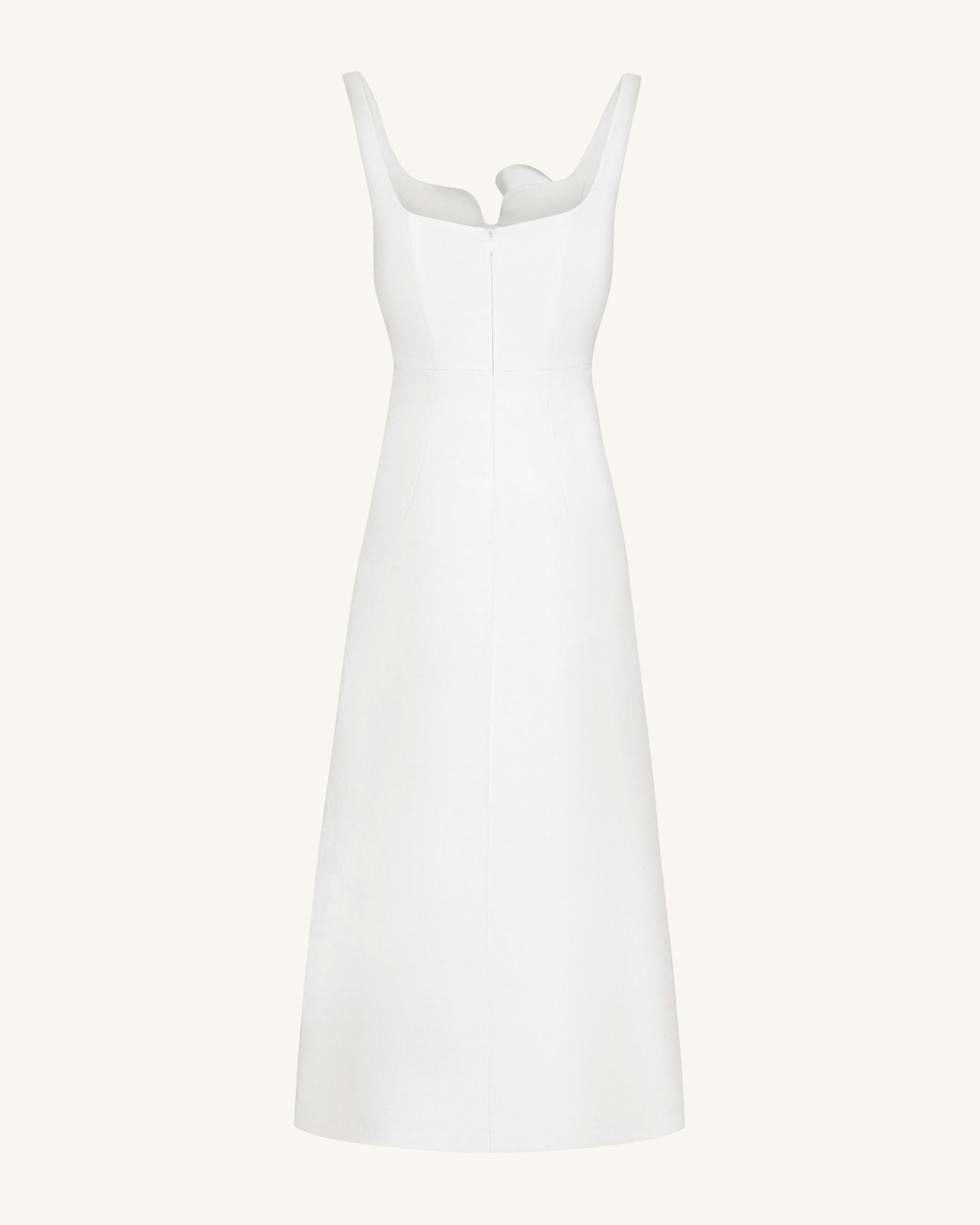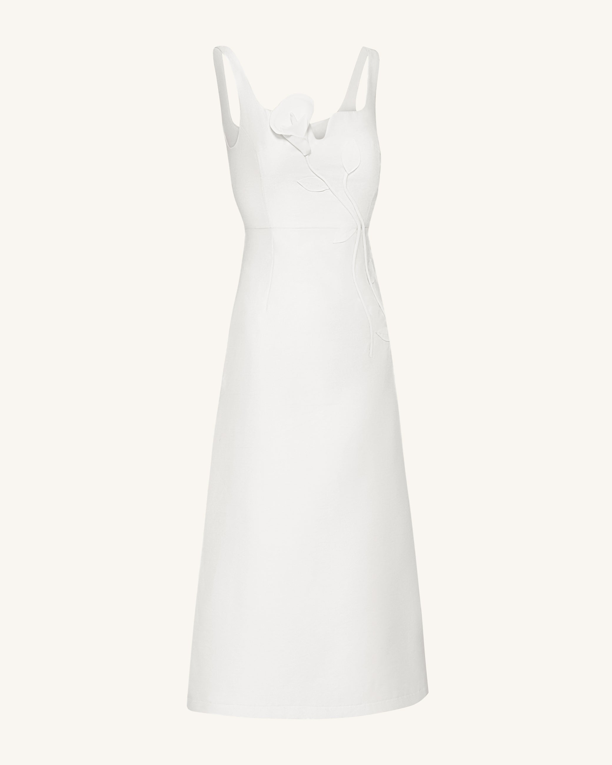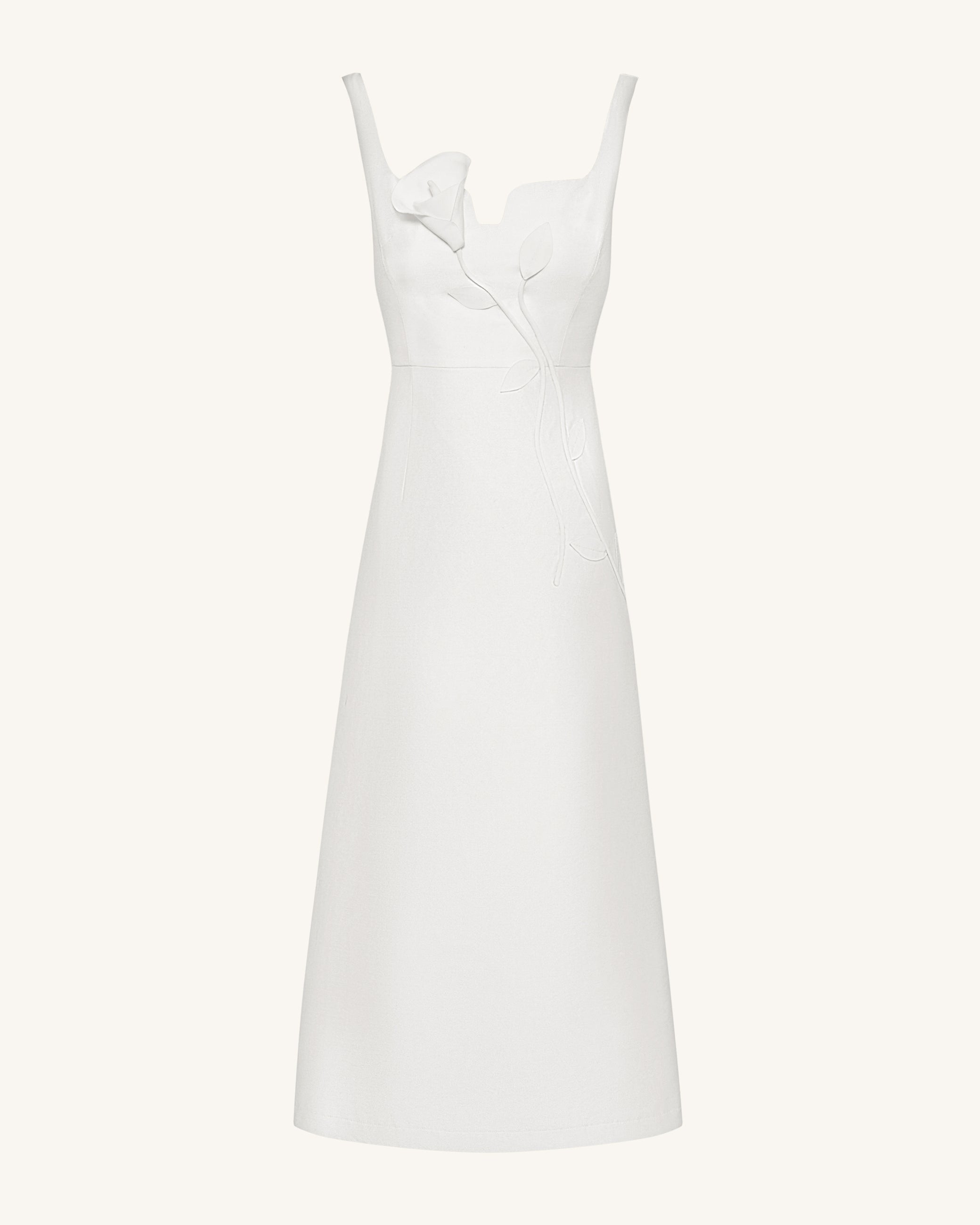 Vestido de Noche Asimétrico con Apliques de Vid 3D y Escote Corazón – Blanco