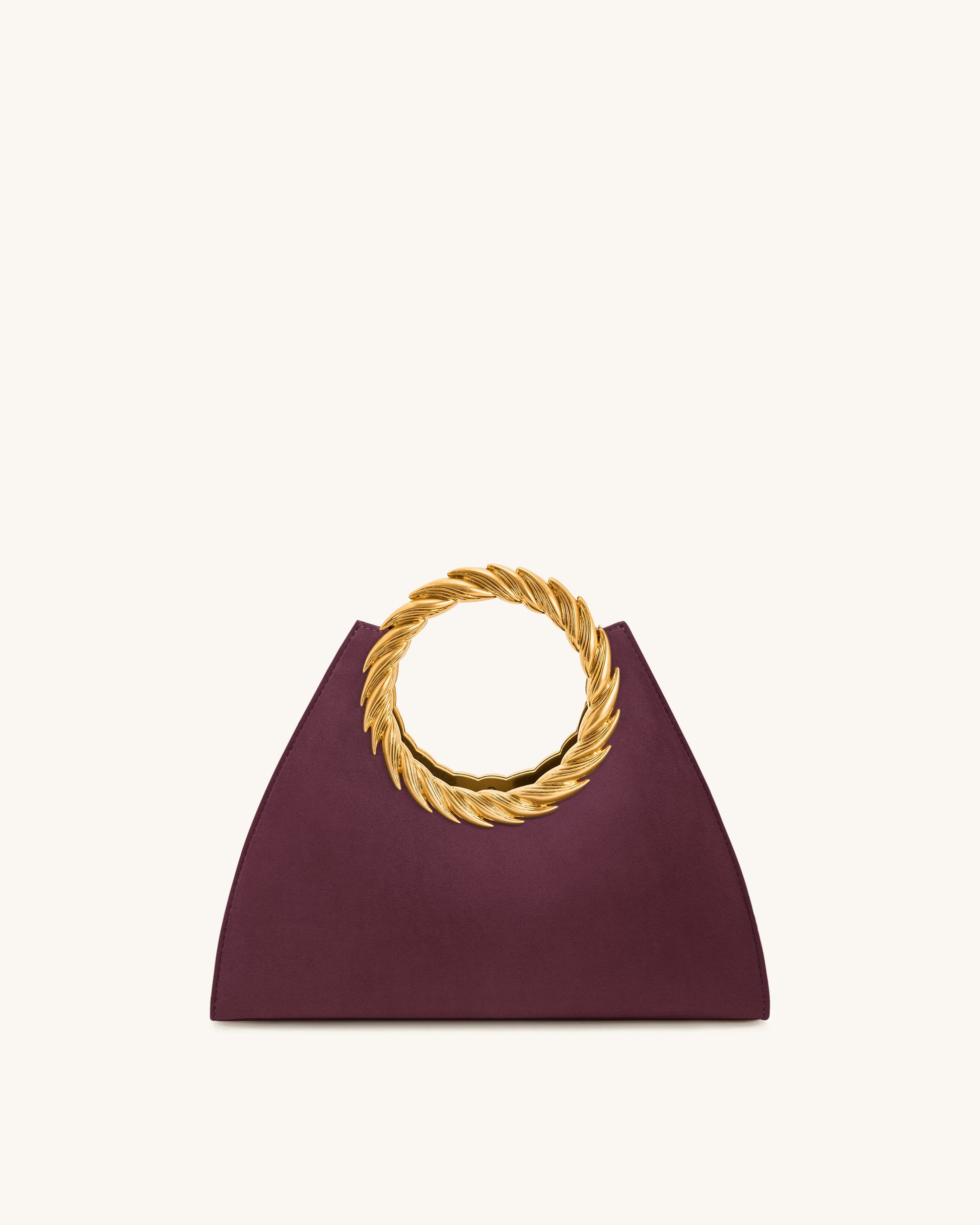Borsa scultura in similpelle scamosciata con manico a foglia Amiya - Rosso Merlot