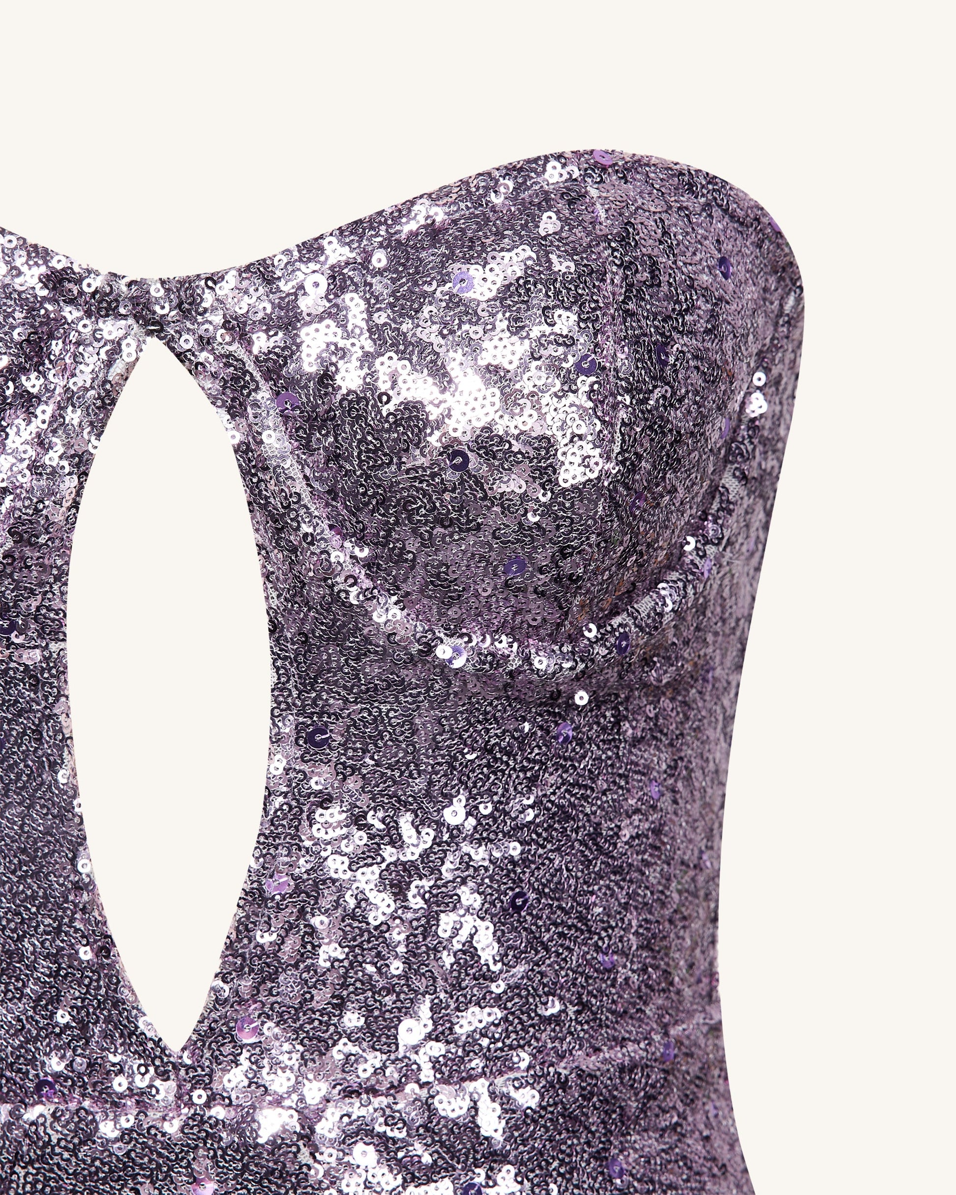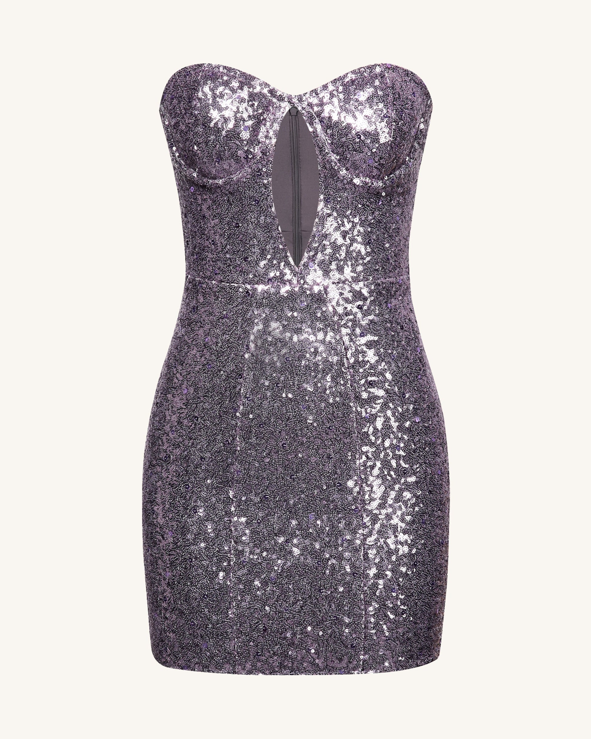 Abito Mini Senza Spalline con Paillettes Viola Brynlee - Viola