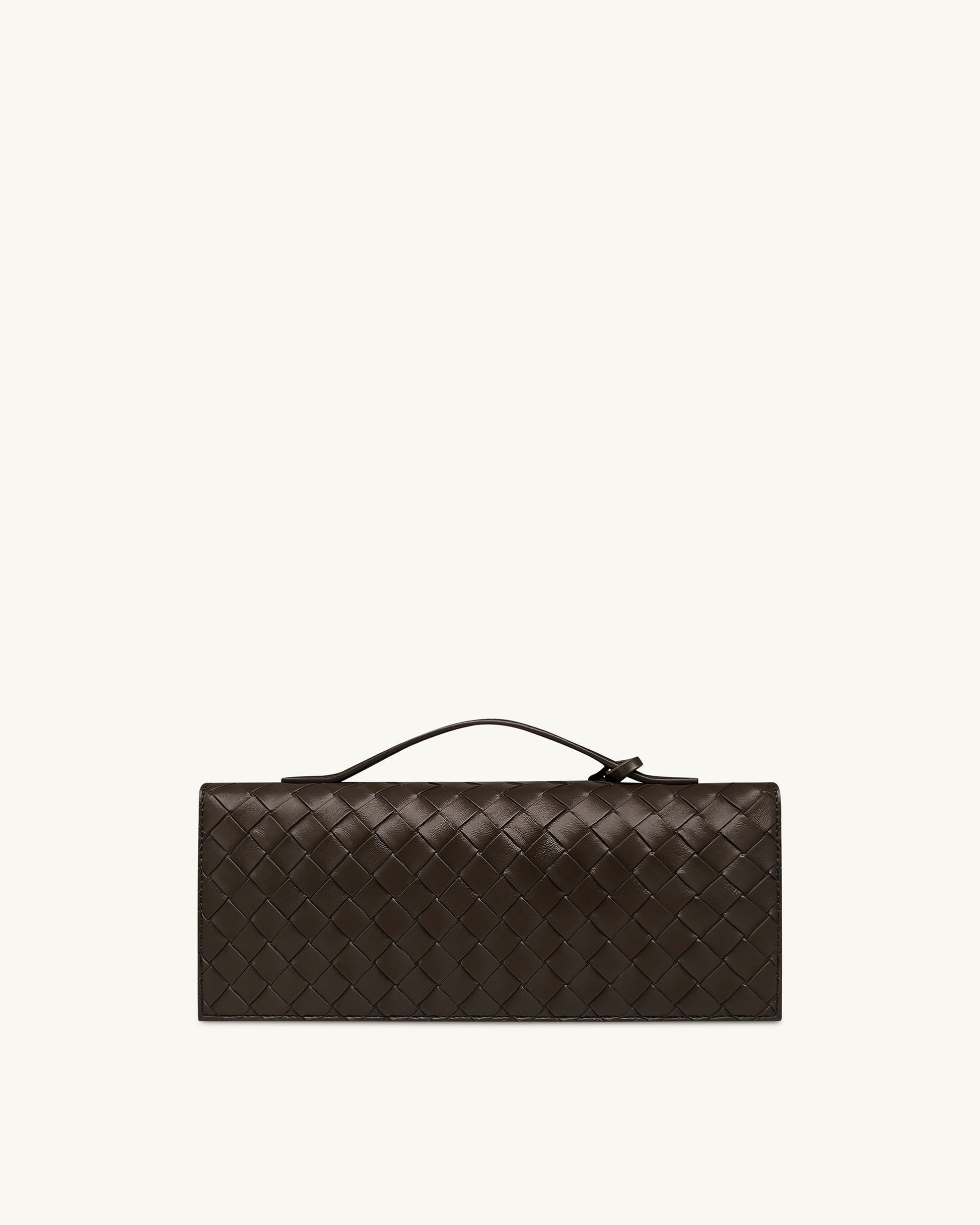 Celeste Borsa a mano con trama intrecciata e patta - Marrone scuro