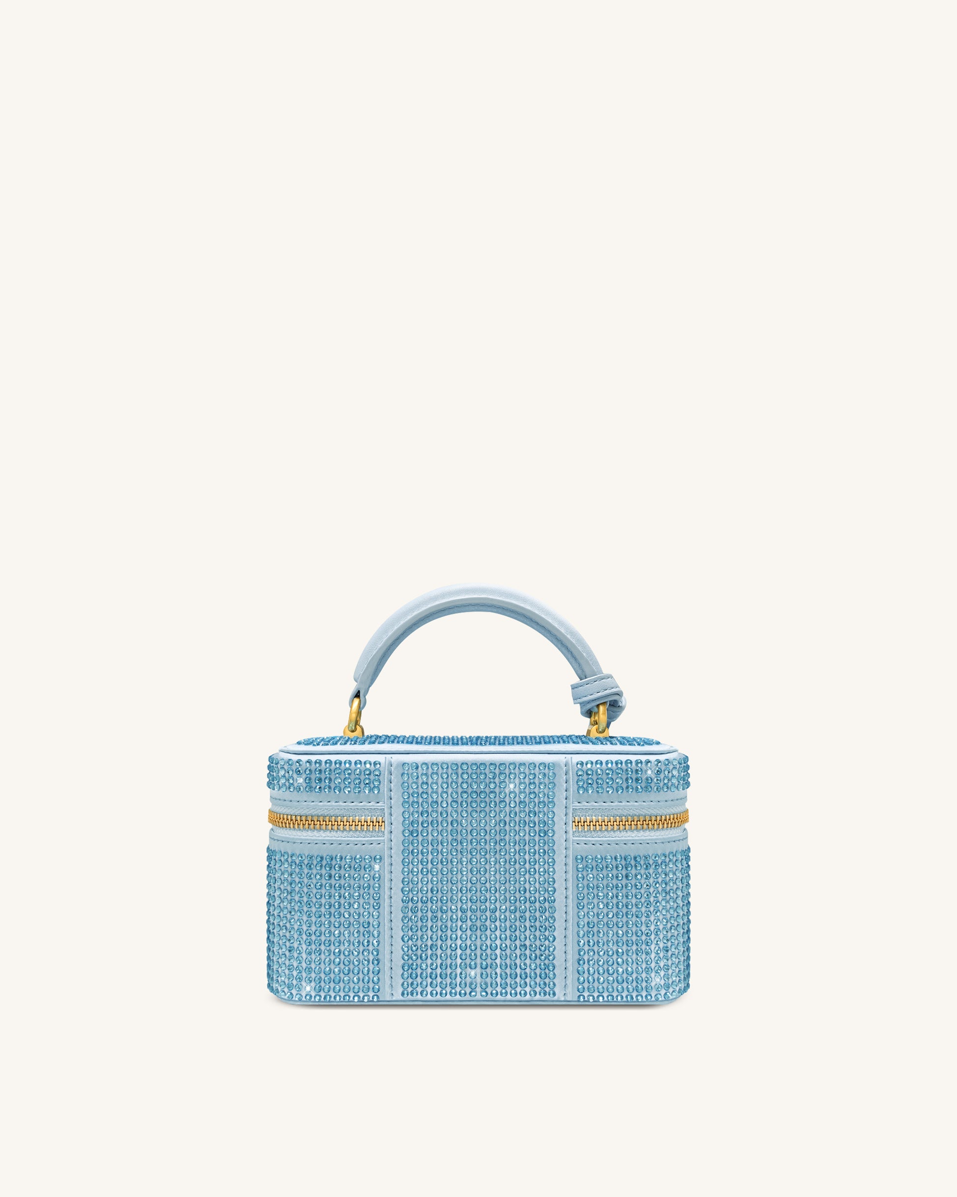 Cleo Borsa con Manico Superiore a Forma di Scatola in Cristallo Artificiale - Blu