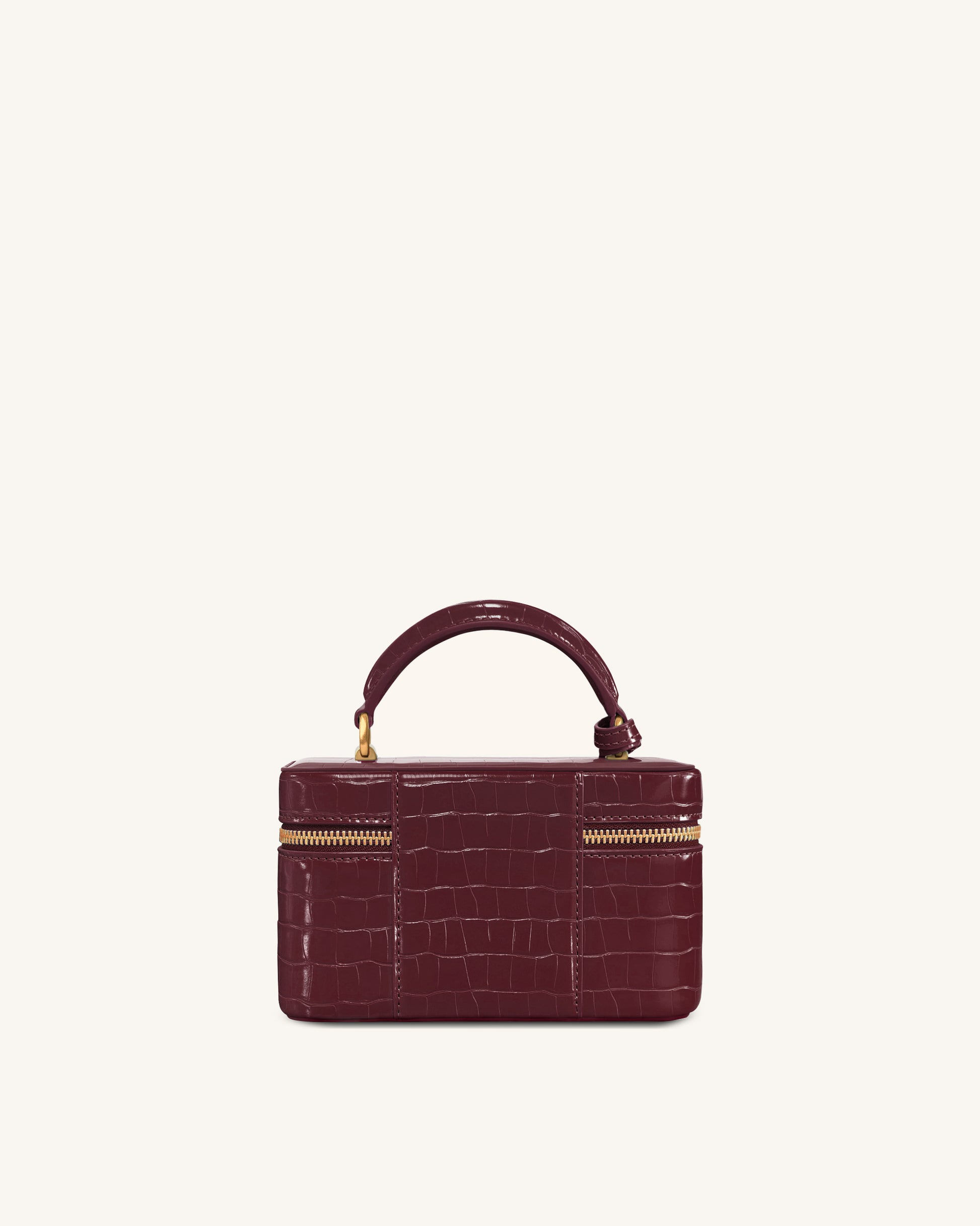Cleo Borsa con Manico Superiore a Forma di Scatola - Bordeaux Effetto Coccodrillo