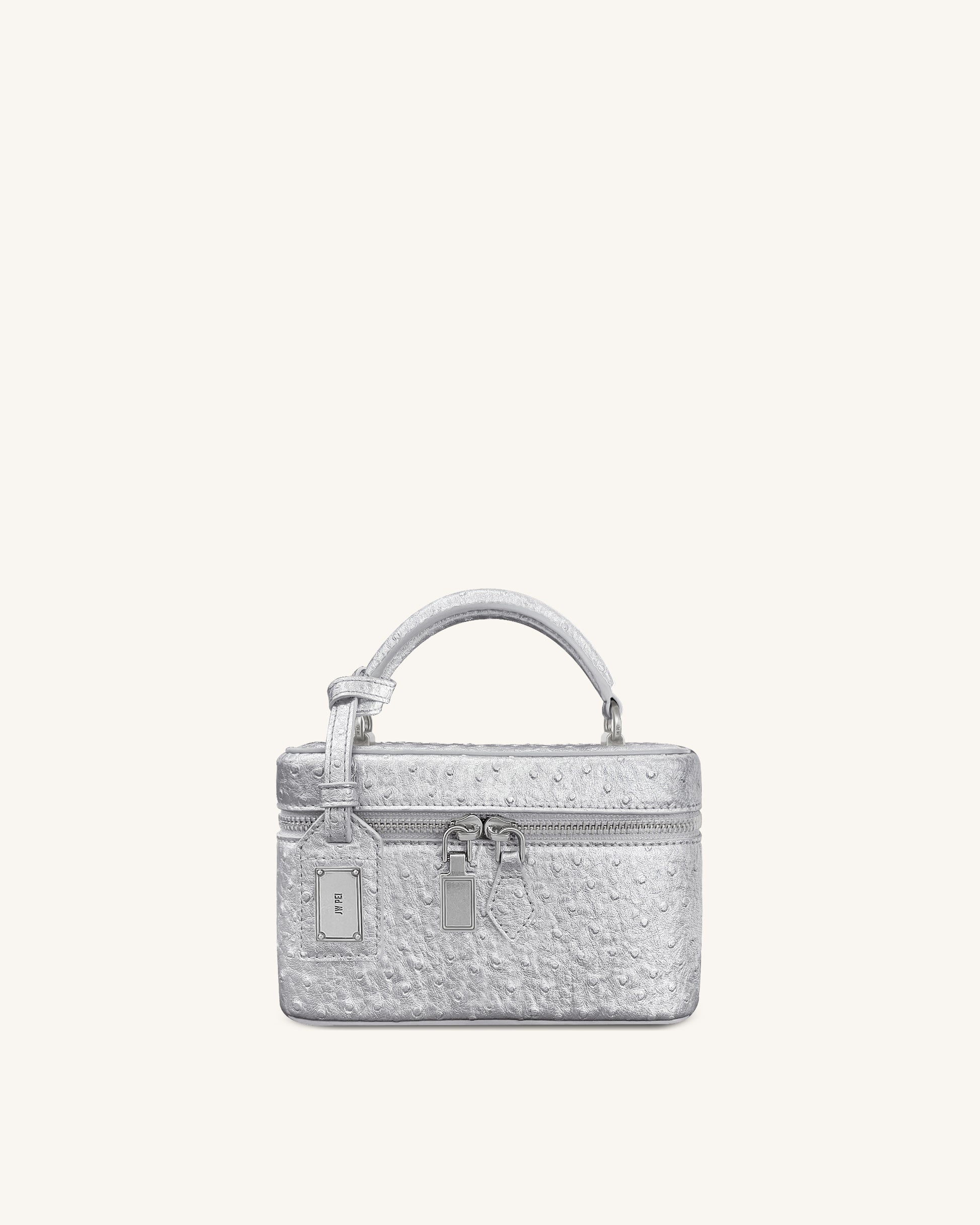 Cleo Borsa con Manico Superiore a Forma di Scatola in Cristallo Artificiale - Argento
