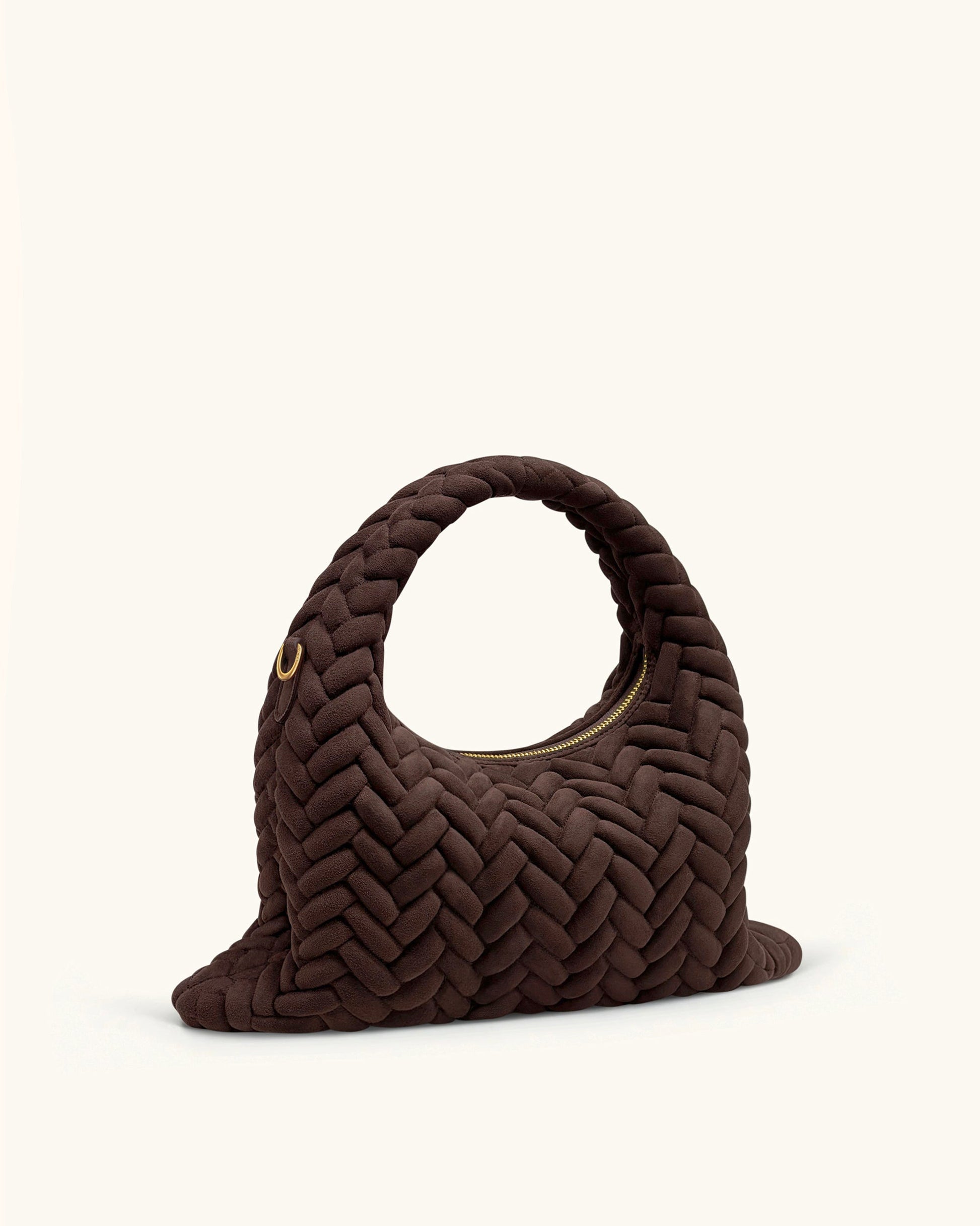 Borsa con Manico Trapuntata in Finta Pelle Scamosciata Cora - Marrone Scuro