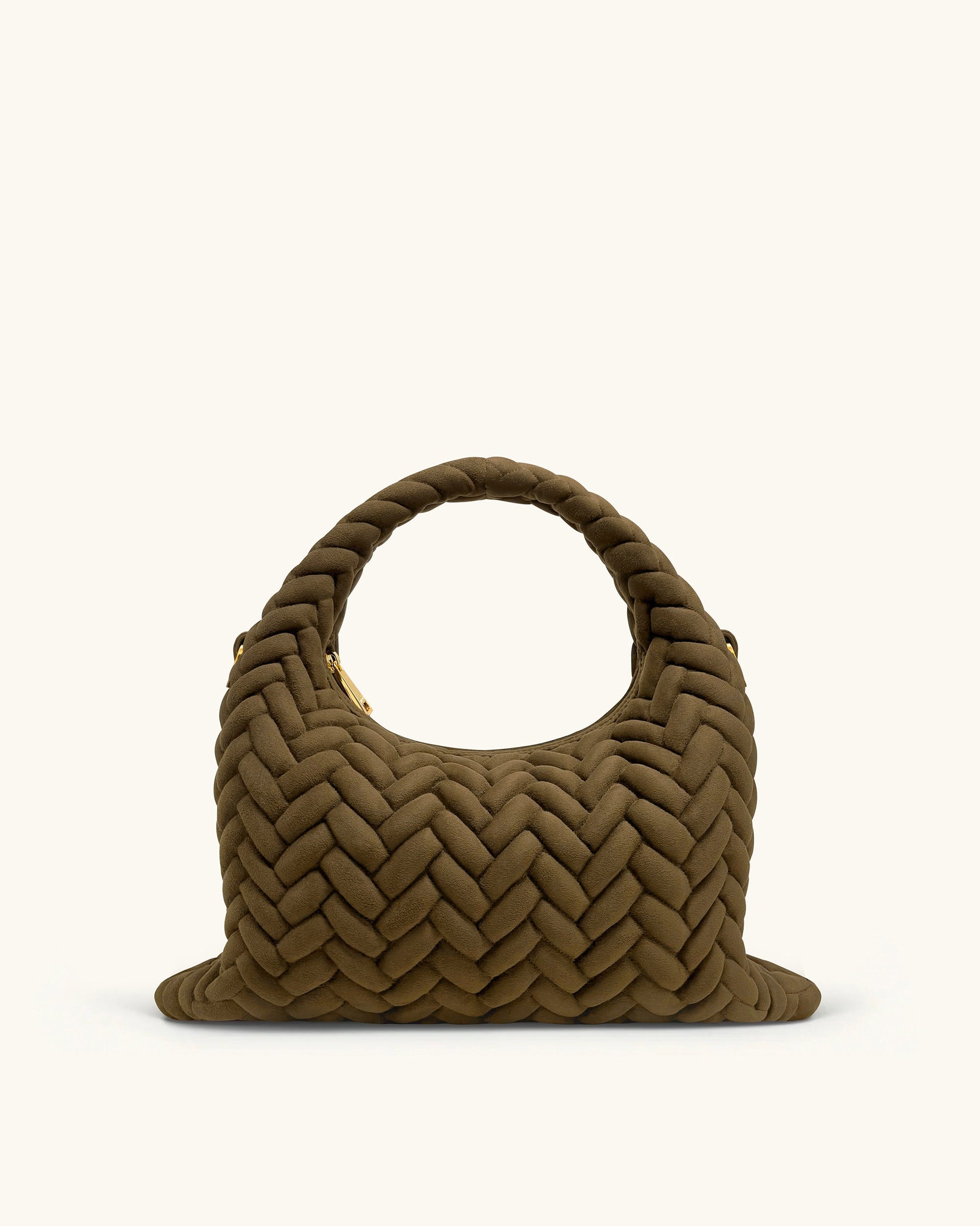 Borsa con Manico Trapuntata in Finta Pelle Scamosciata Cora - Verde Oliva