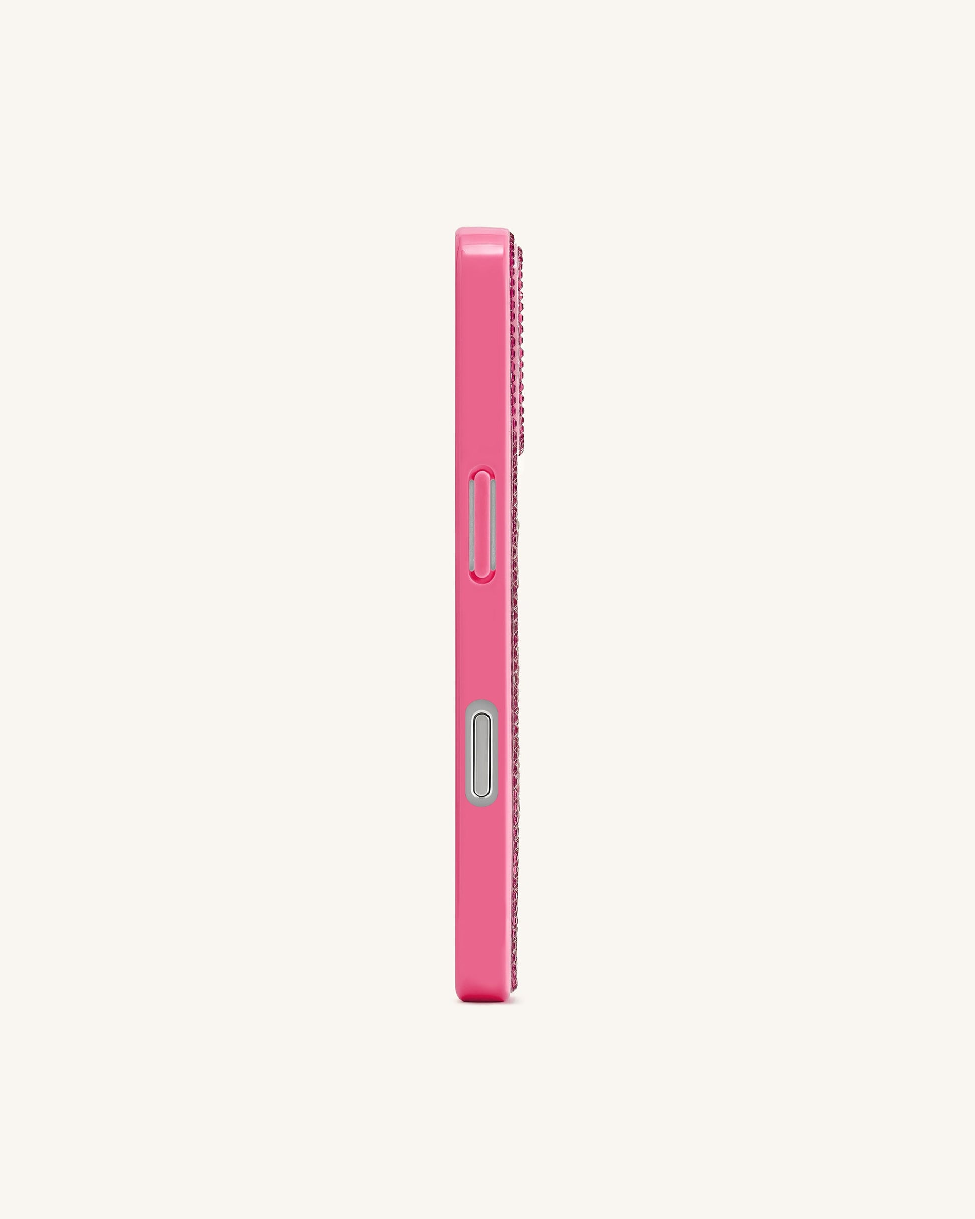 Questa custodia per telefono presenta un audace messaggio “Don’t touch me!” in cristalli artificiali bianchi su uno sfondo di strass rosa scintillanti. Elegante ed espressiva, offre anche una protezione di base per il dispositivo e una presa migliorata.Ogni custodia è fatta a mano, quindi potrebbero esserci lievi variazioni di lavorazione in ogni prodotto.