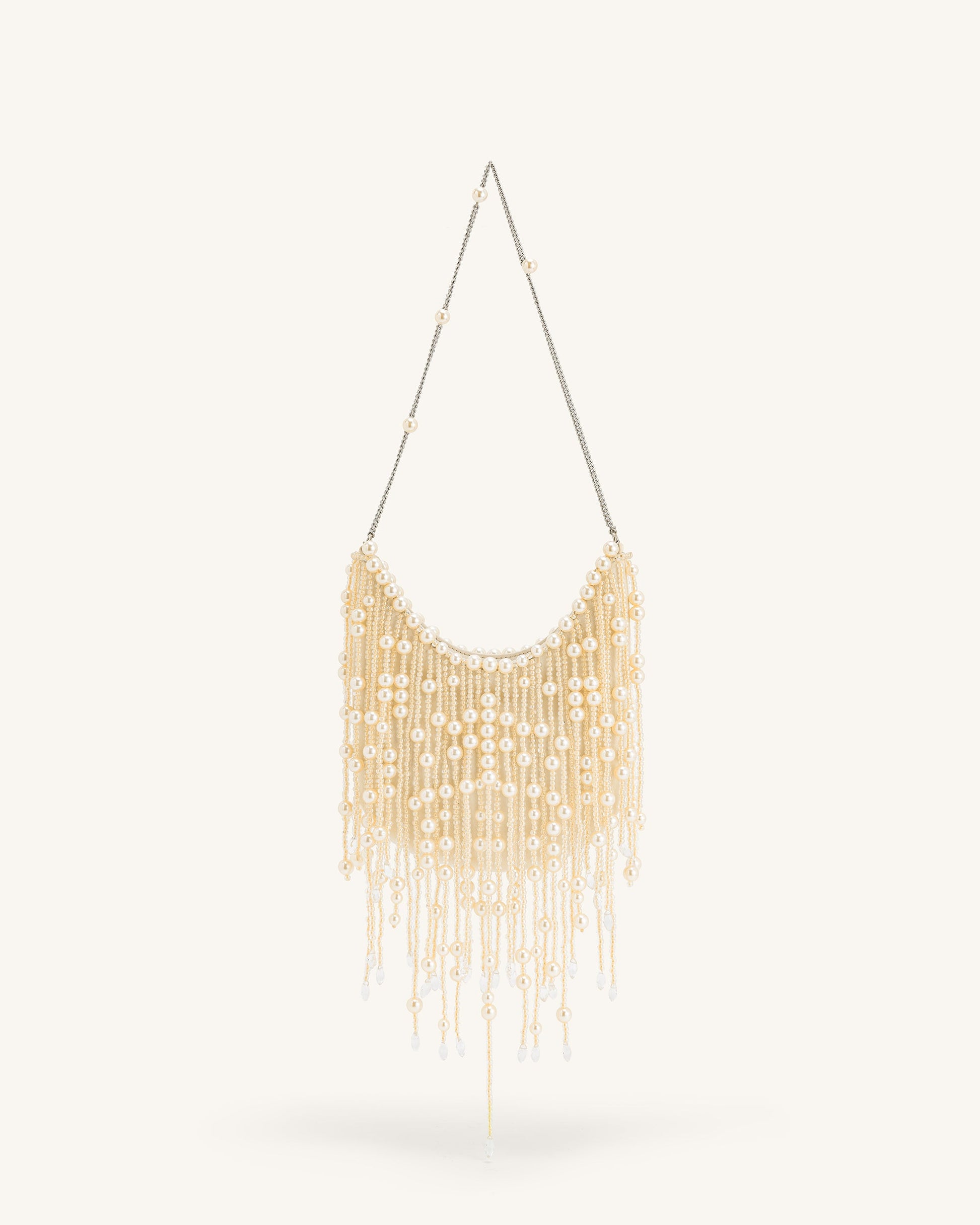Elaine Borsa con Frange e Perle Applicate - Bianco