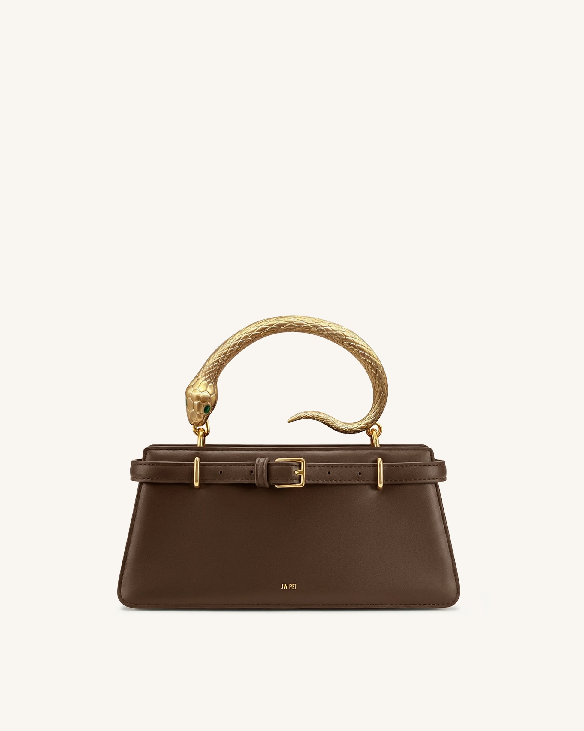 Elena Borsa con manico superiore a serpente - Marrone scuro