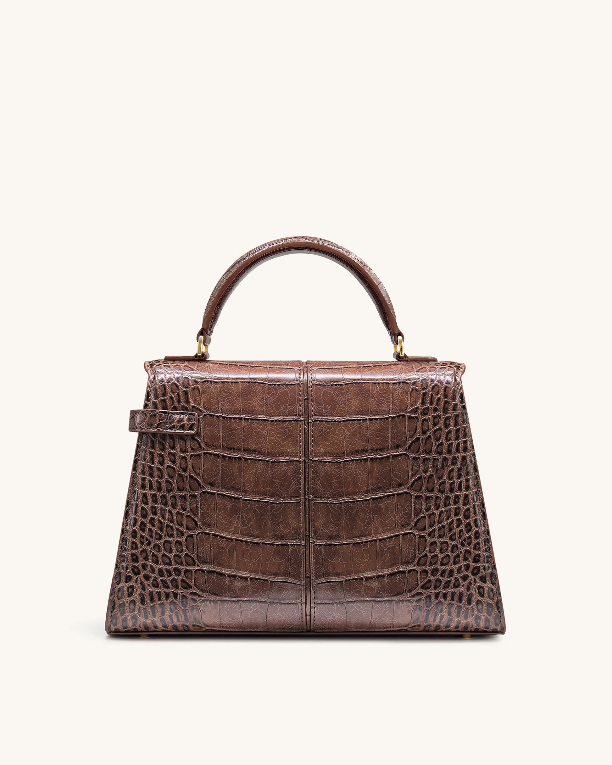 Elise Borsa Grande a Mano con Effetto Coccodrillo - Marrone Castagna