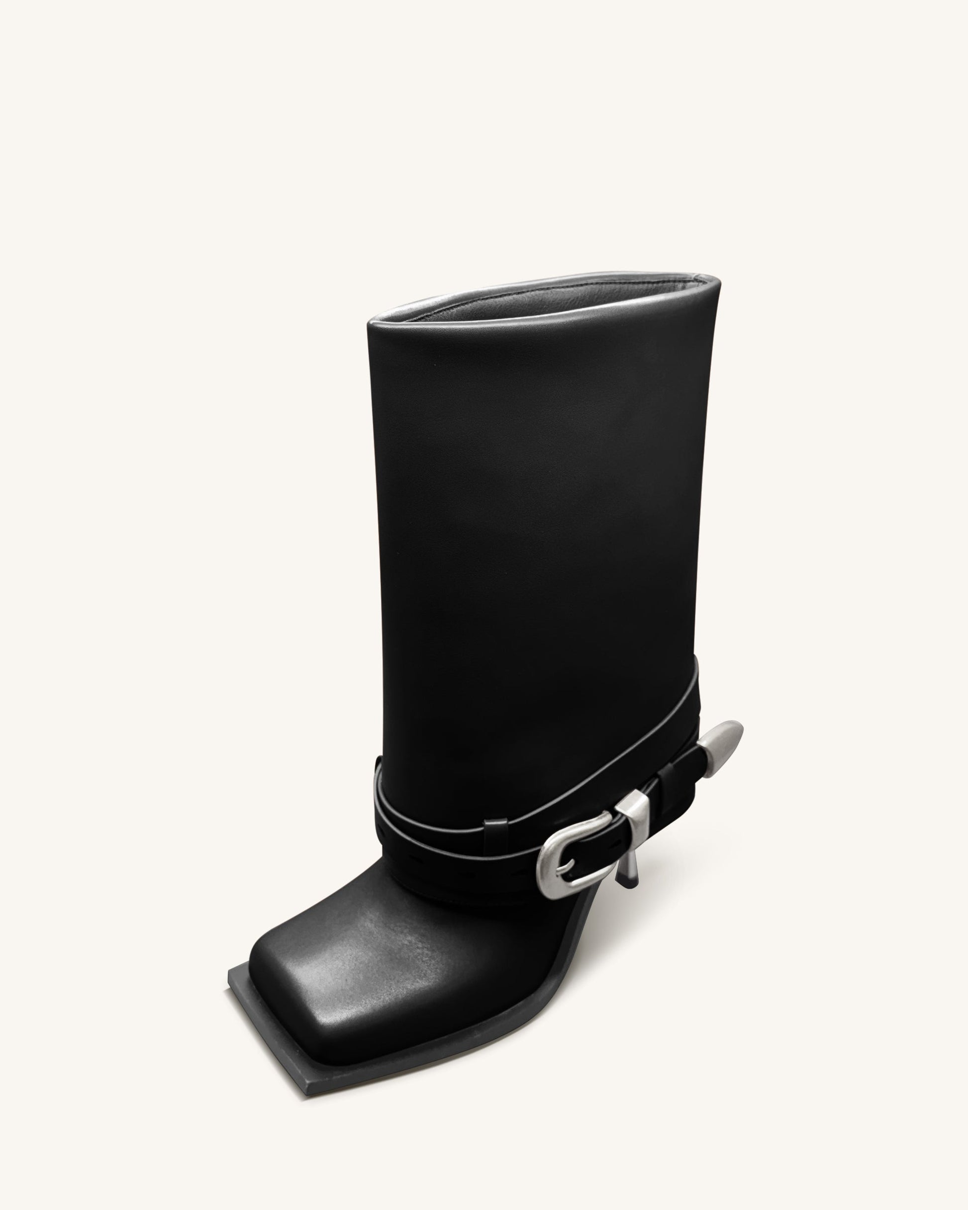 Emilia Stivali a stiletto in pelle con fibbia western - Nero