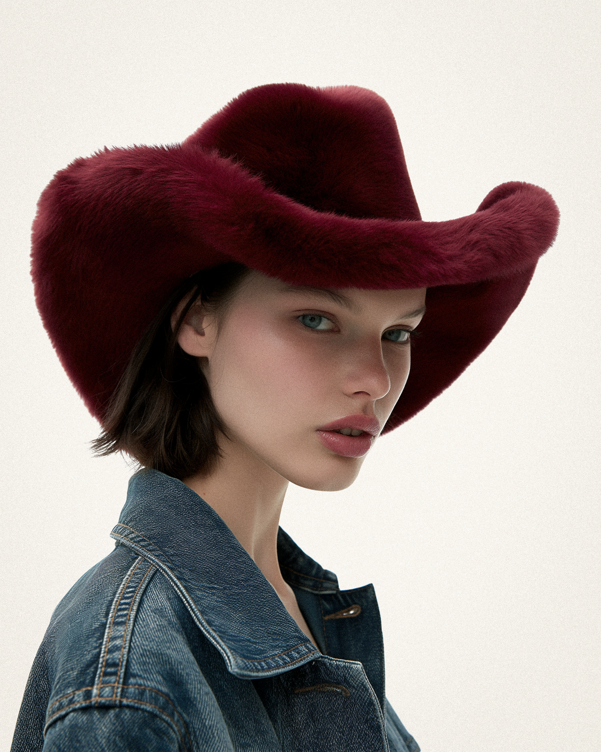 Elora Cappello da Cowboy in Pelliccia Sintetica - Borgogna