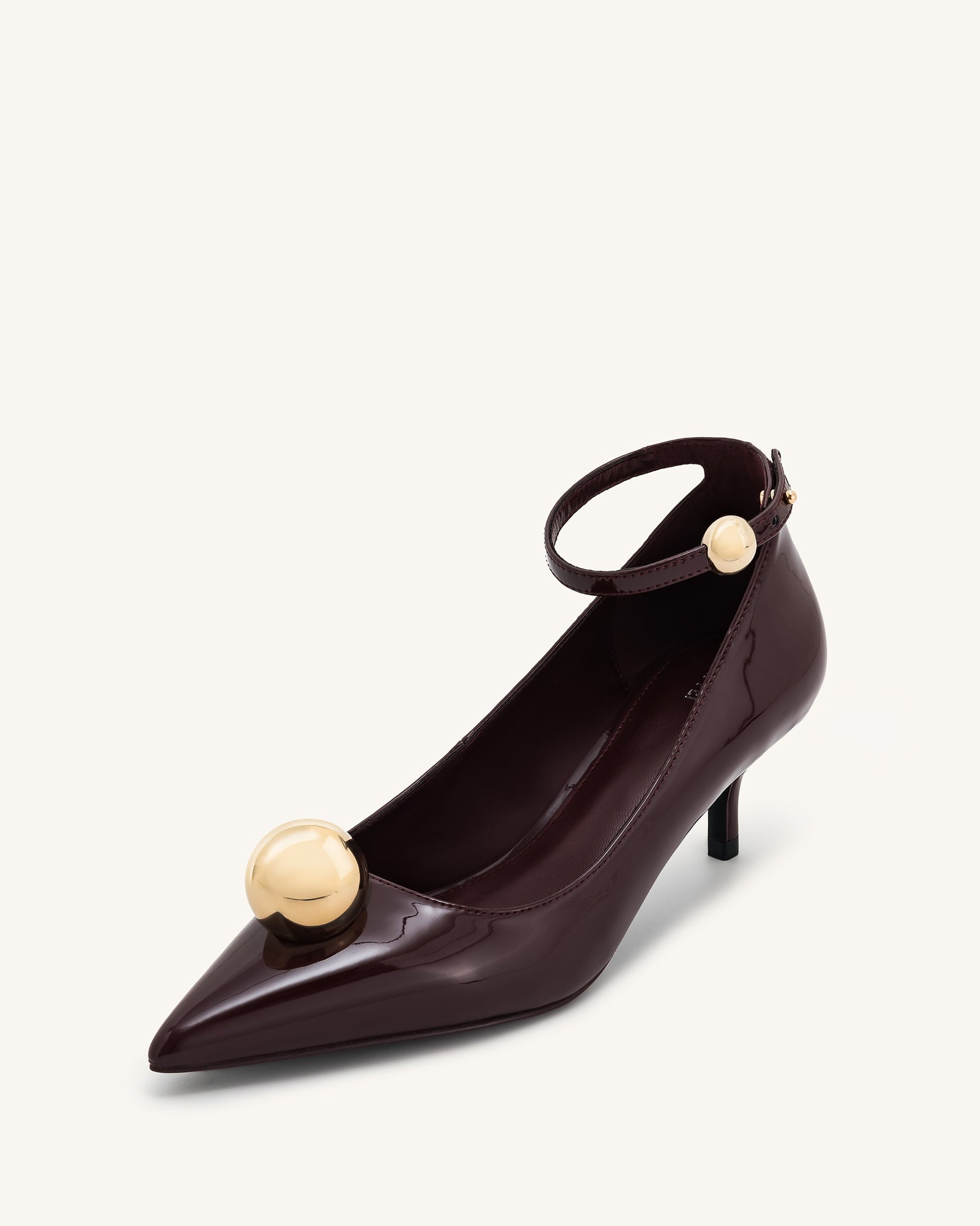 Decolleté con tacco a spillo e fibbia gioiello - Rosso Granato