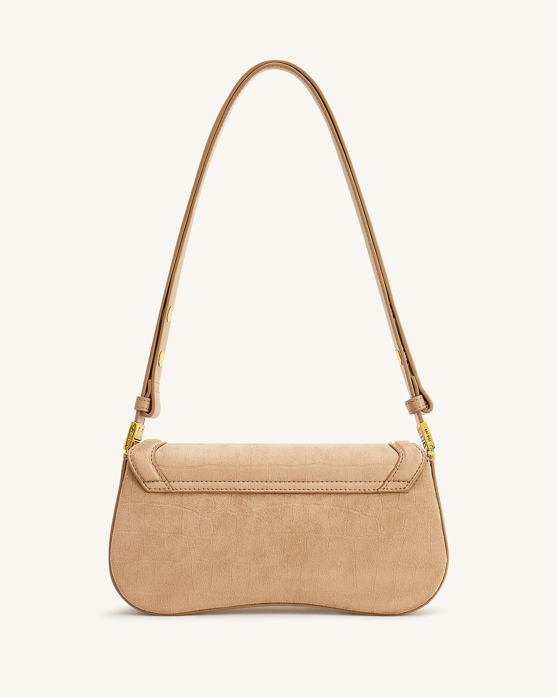 Joy Borsa a Spalla in Similpelle Scamosciata con Stampa Croco - Beige