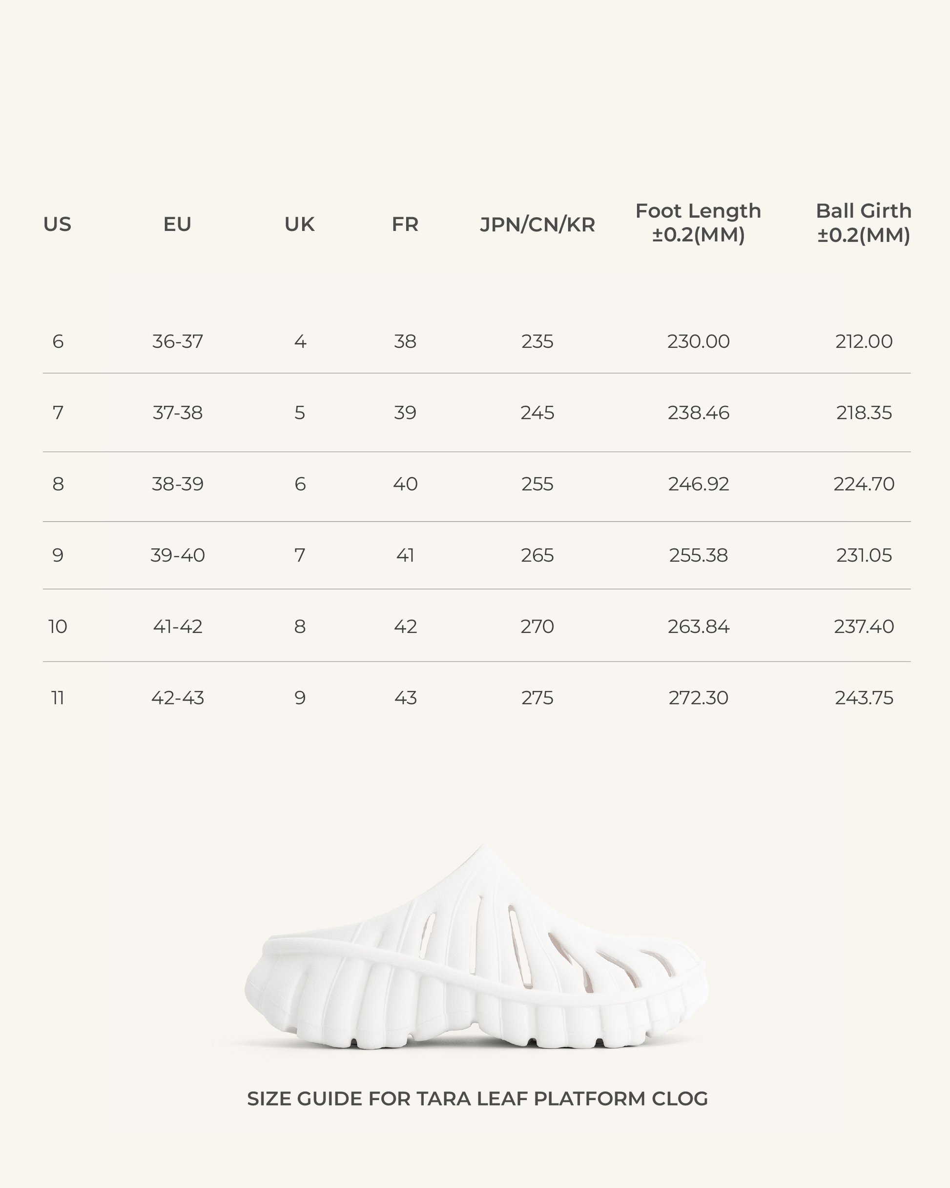 | US | EU | UK | JPN/CN/KR | Lunghezza del piede±0.2 (CM) |