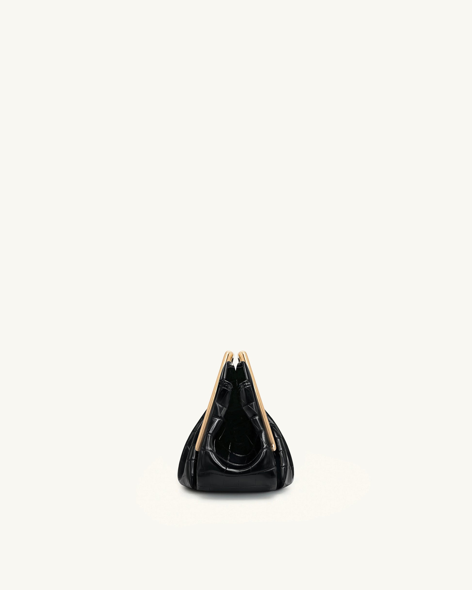 Pochette Lila in similpelle effetto coccodrillo con cornice in metallo - Nero