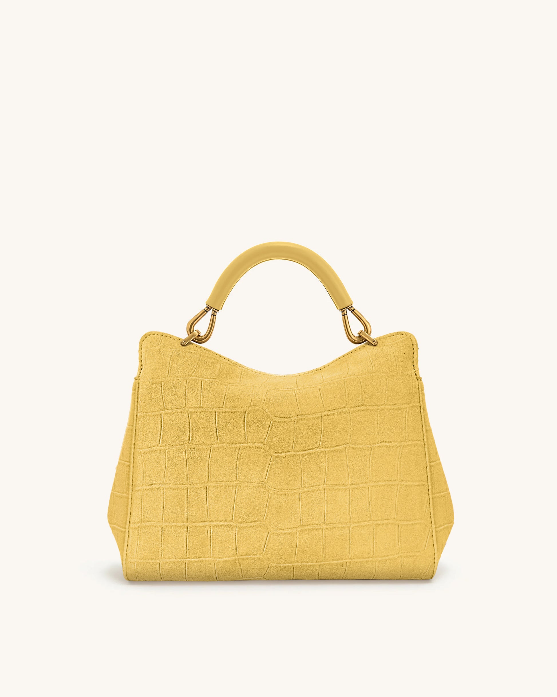 Lucia Borsa Classica a Mano in Finta Pelle Scamosciata con Stampa Coccodrillo - Gialla