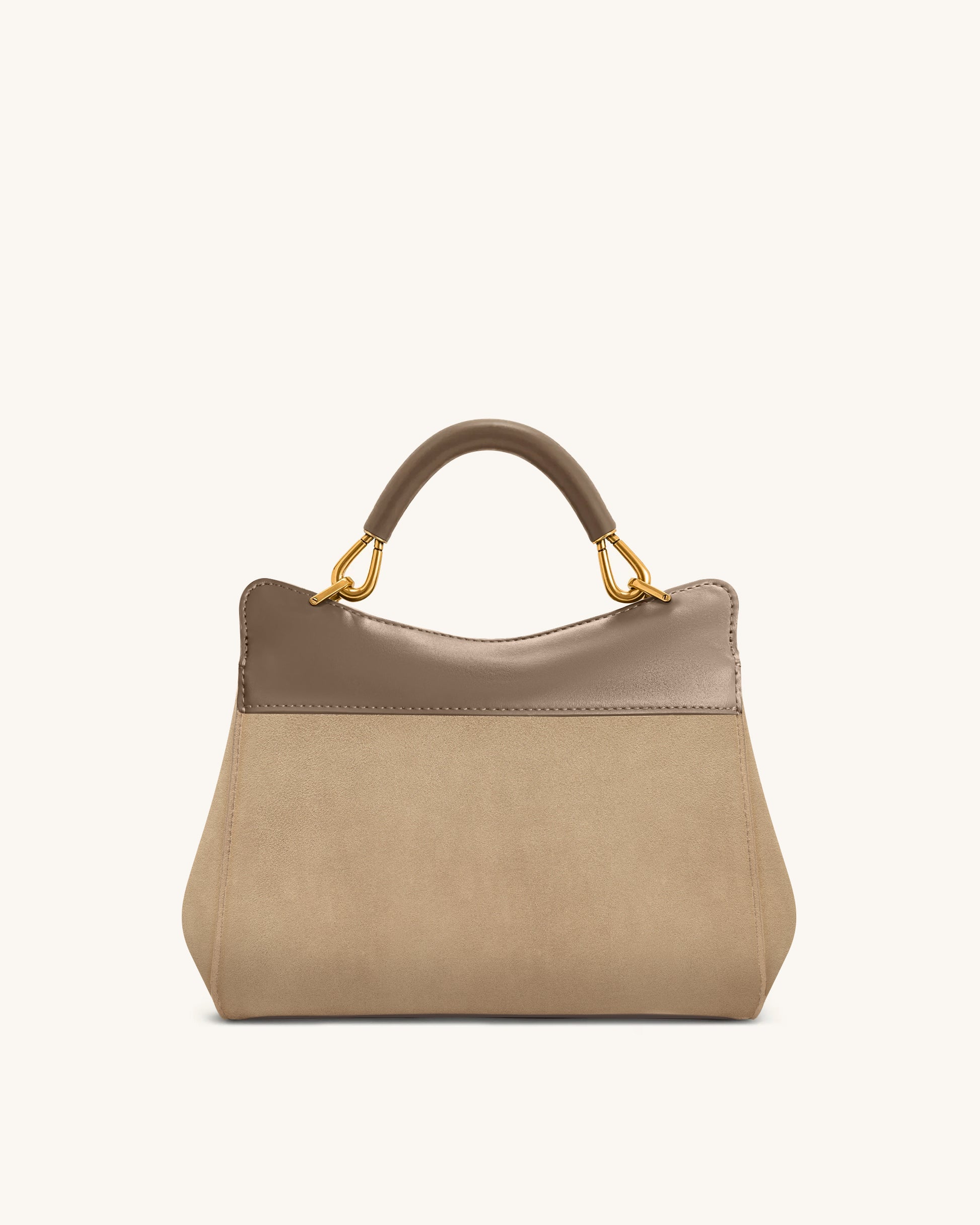 Lucia Borsa Classica a Mano in Finta Pelle Scamosciata - Tortora