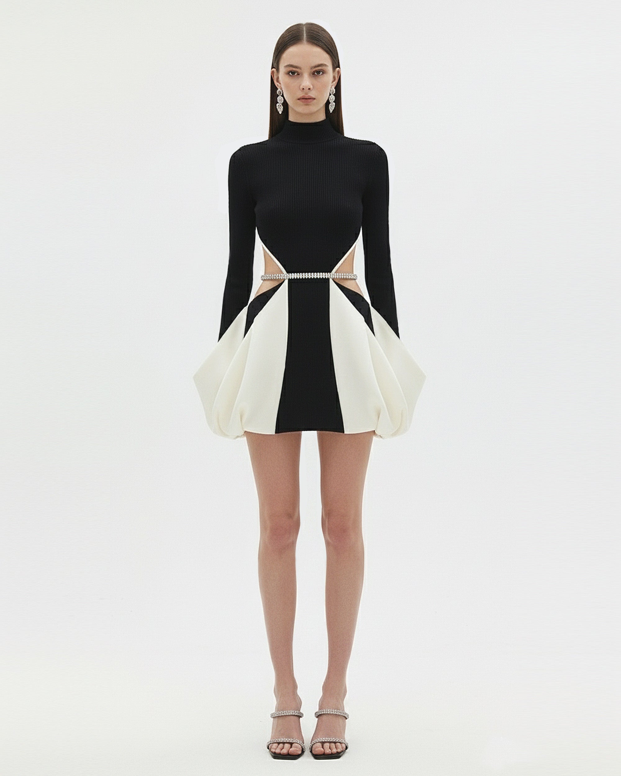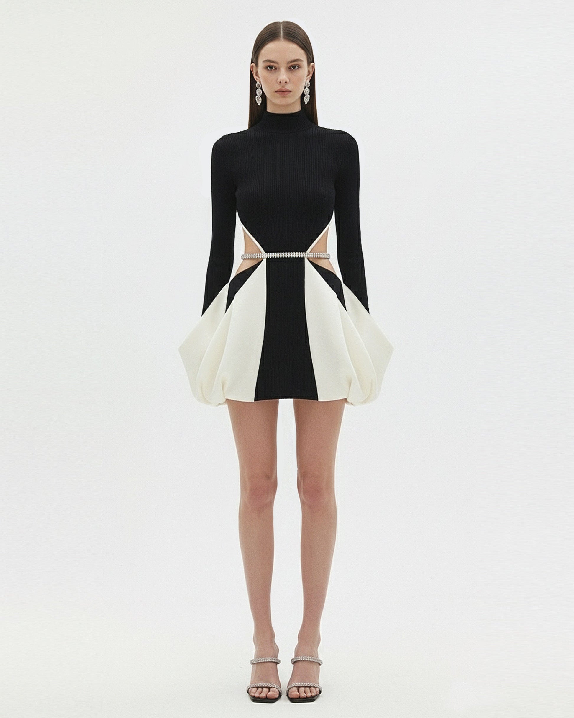 Mini abito monocromatico a pannelli con cut-out - Nero