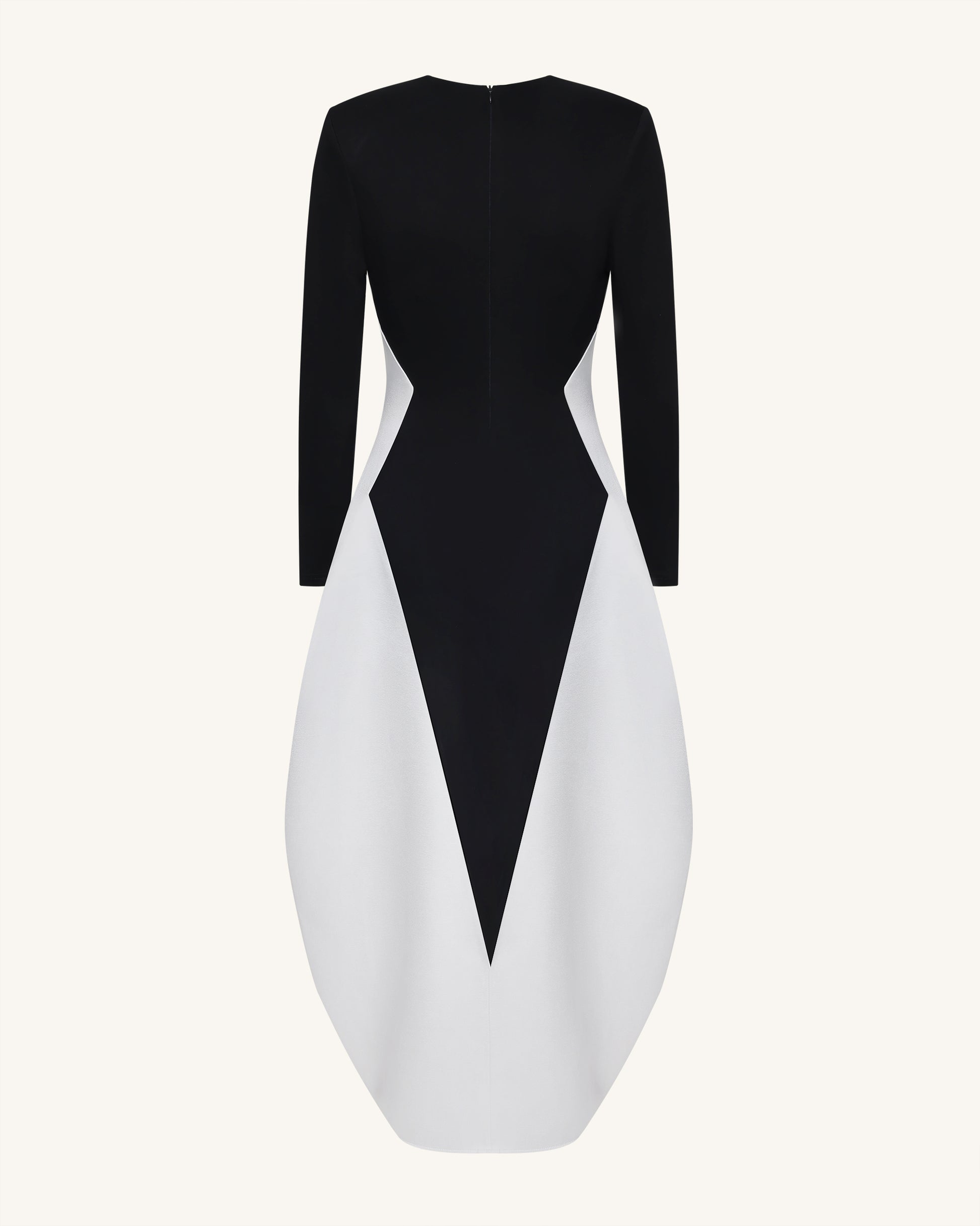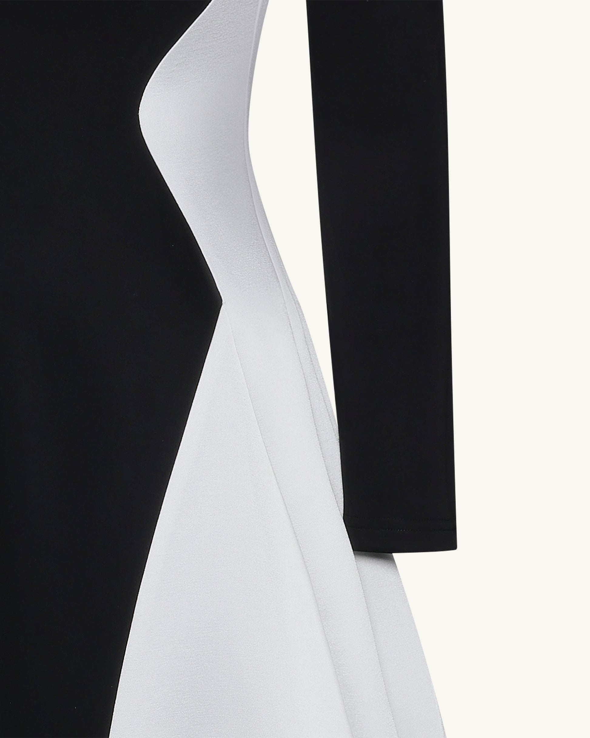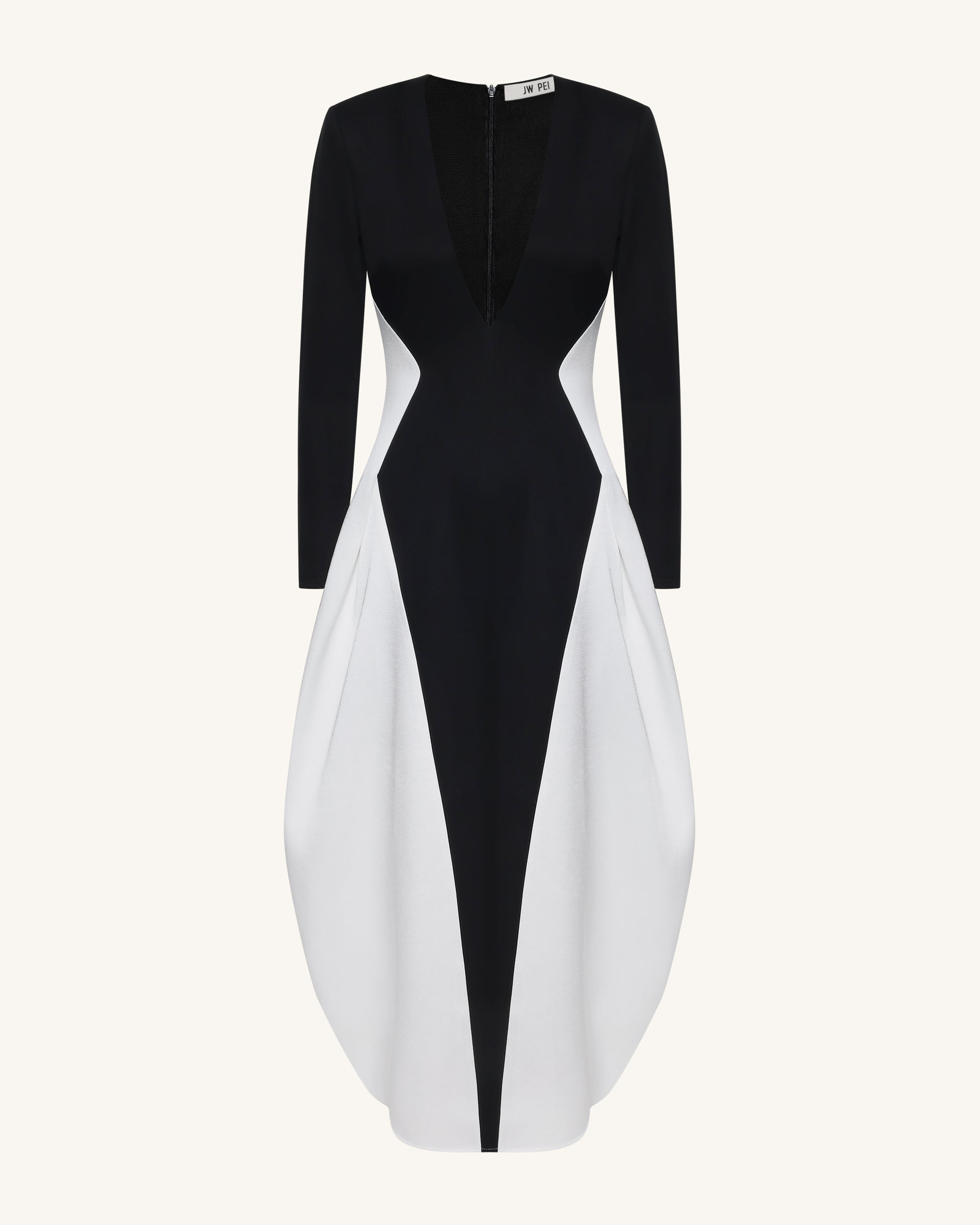 Abito lungo monocromatico a pannelli con scollo a V profondo e maniche lunghe - Nero