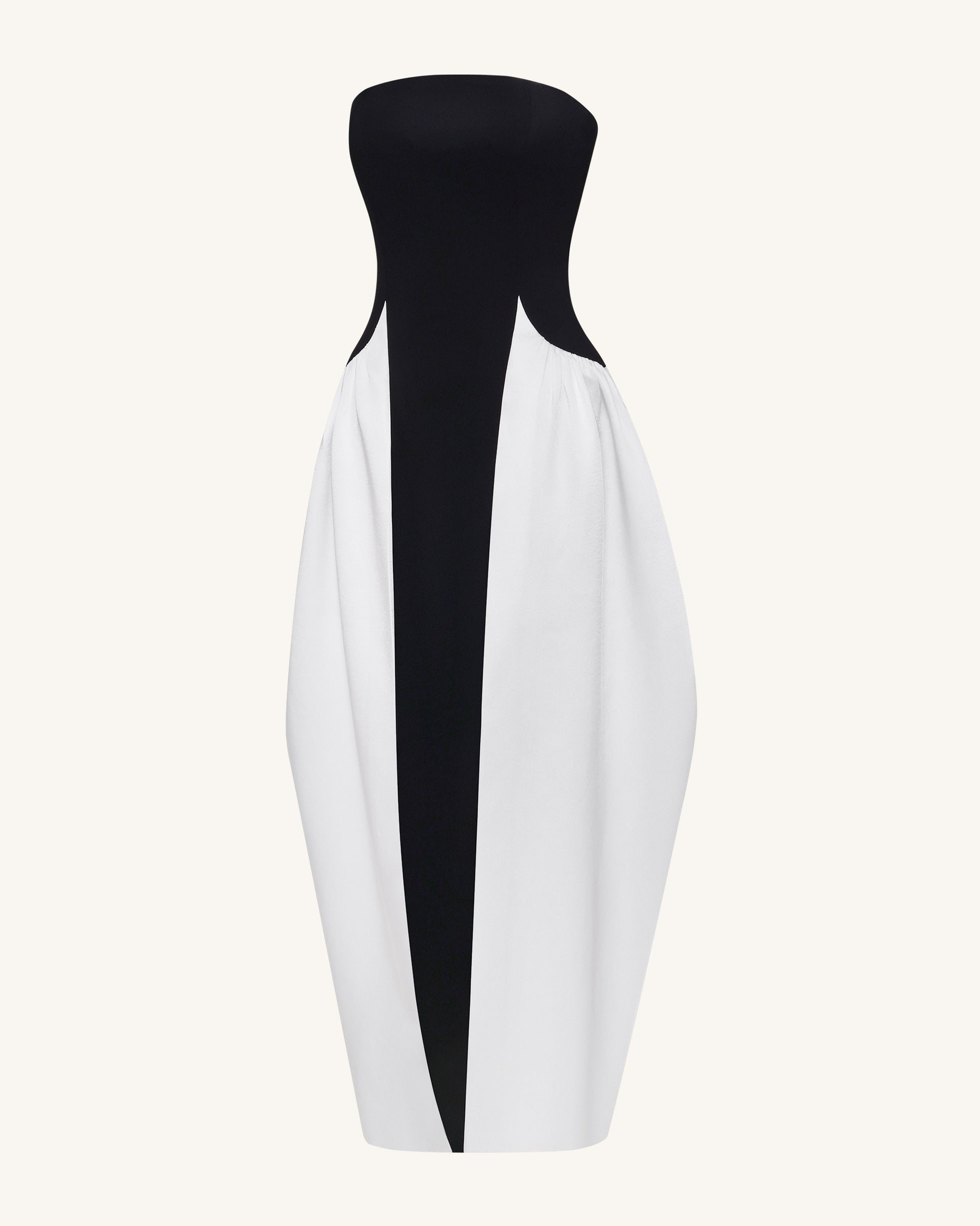 Abito lungo scultoreo senza spalline con pannelli monocromatici - Nero