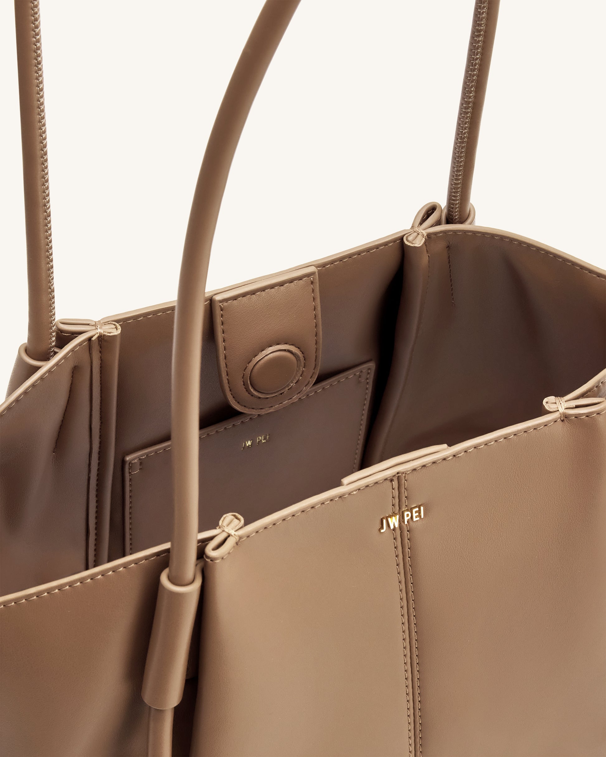 Ampia tote in pelle vegana con ampie ali laterali. Design moderno e minimalista. Strutturata e versatile per l’uso quotidiano.