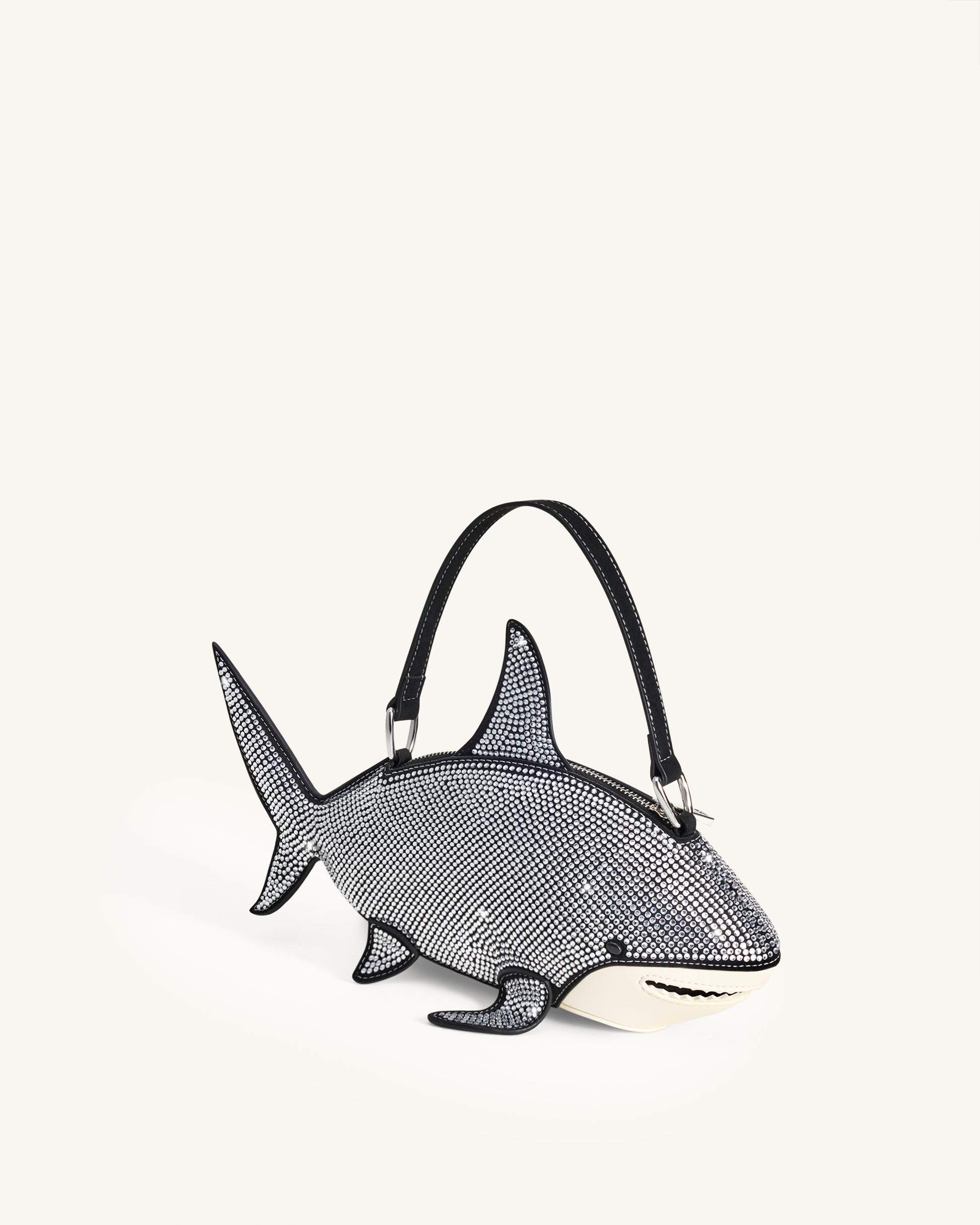 Nerys Borsa a Mano a Forma di Squalo con Cristalli Artificiali - Nera