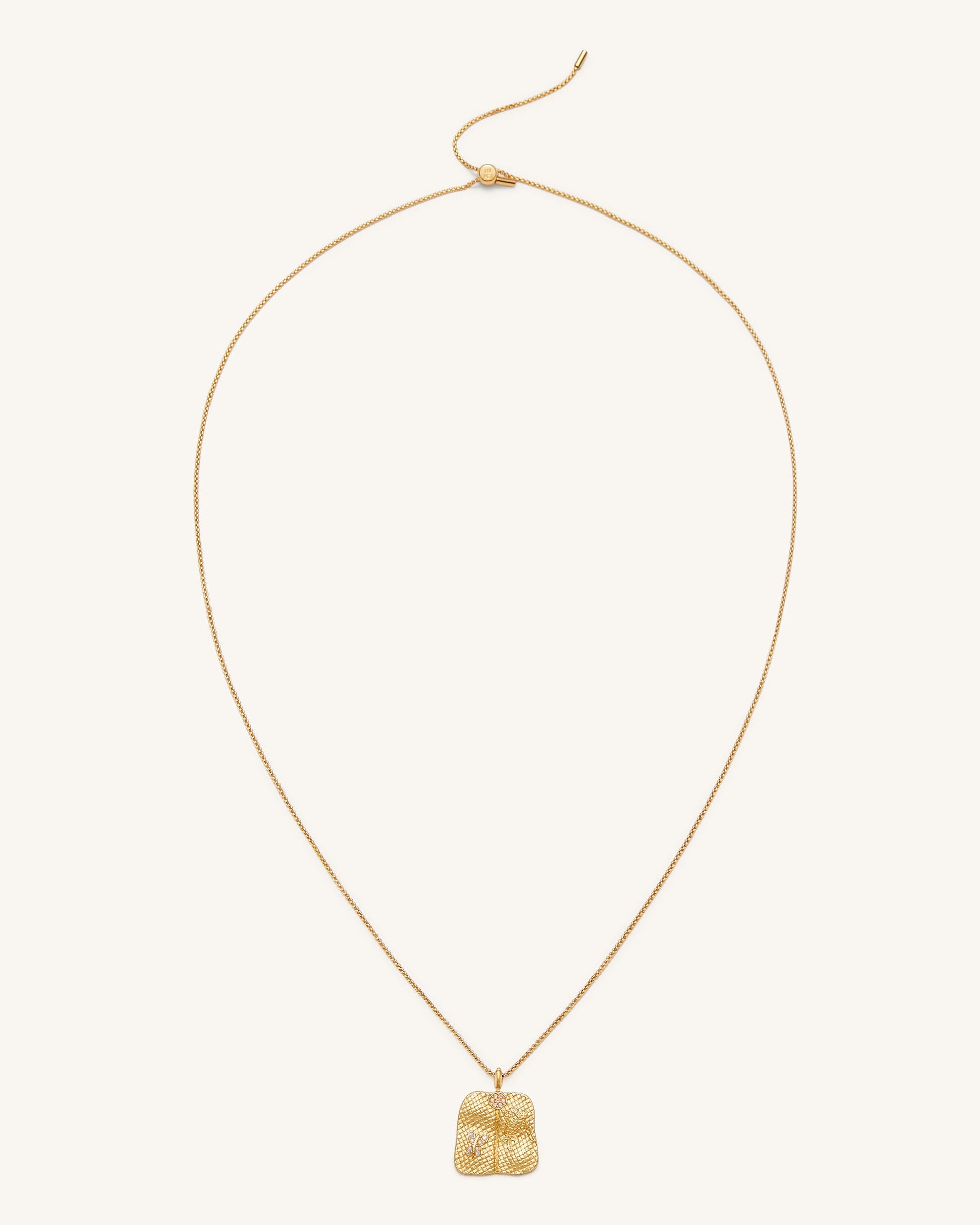 Collana con ciondolo a ventaglio di piantaggine - Placcato oro 18 ct & Zircone bianco