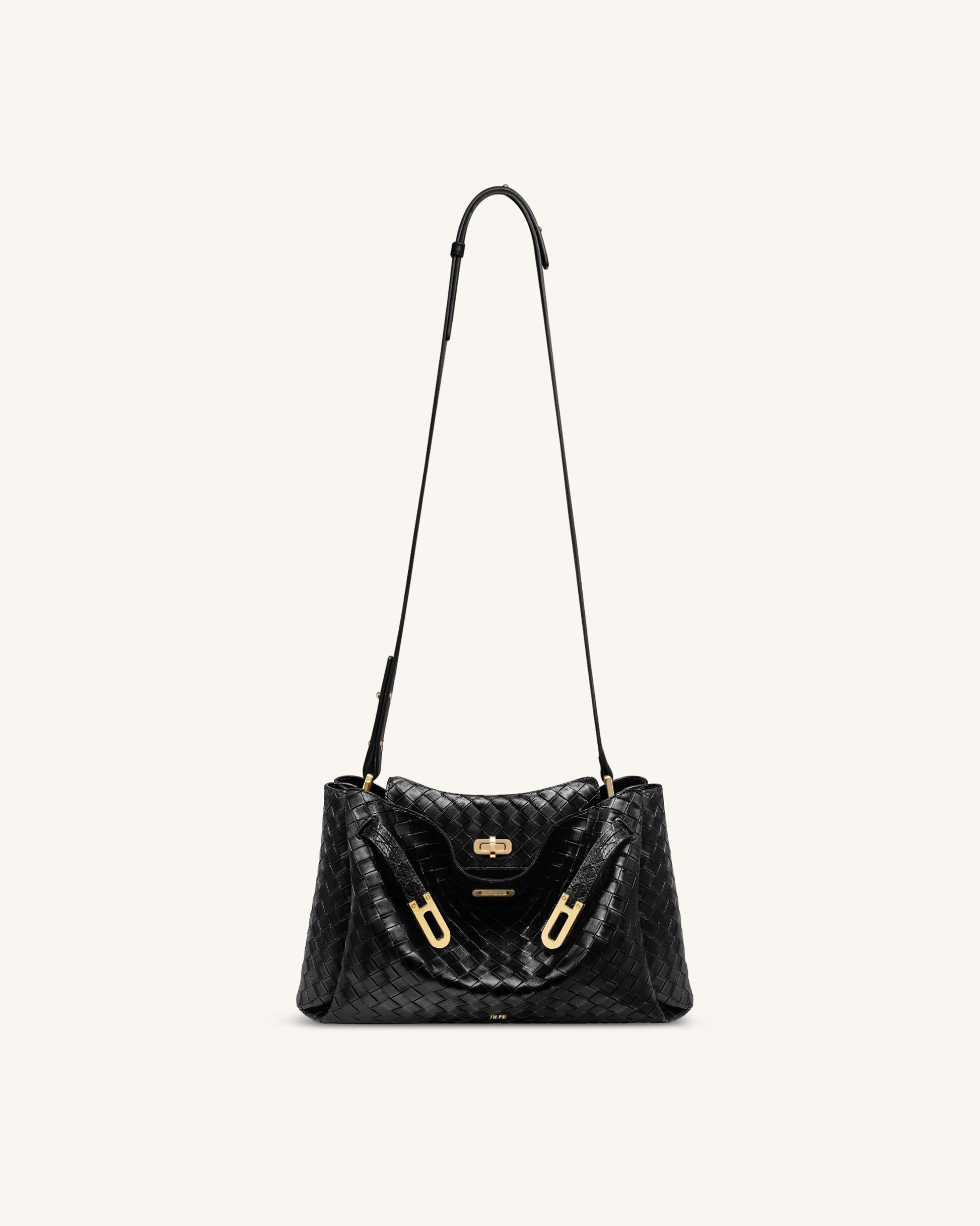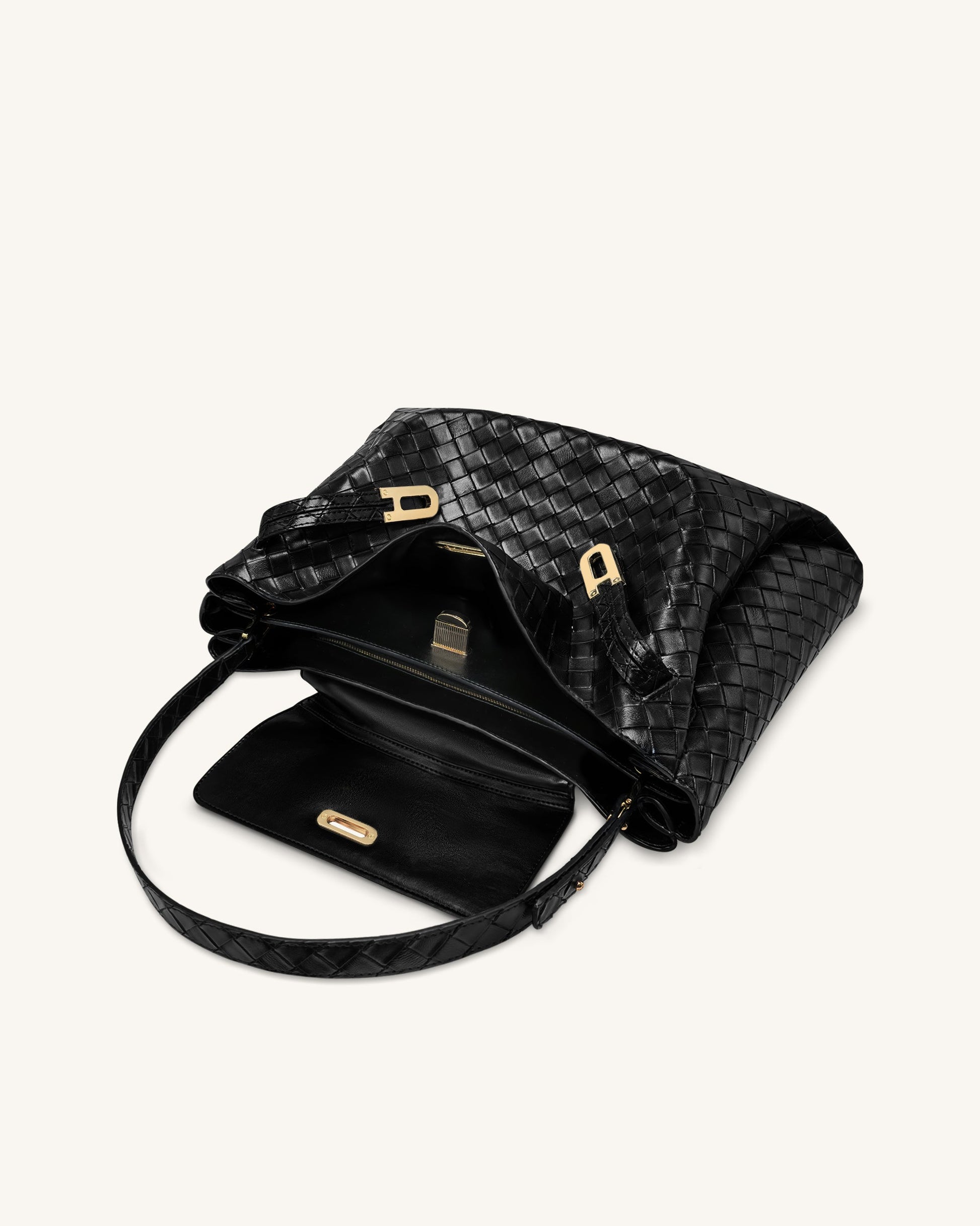 Rhea Grande Borsa a Tracolla Tessuta Testurizzata - Nera