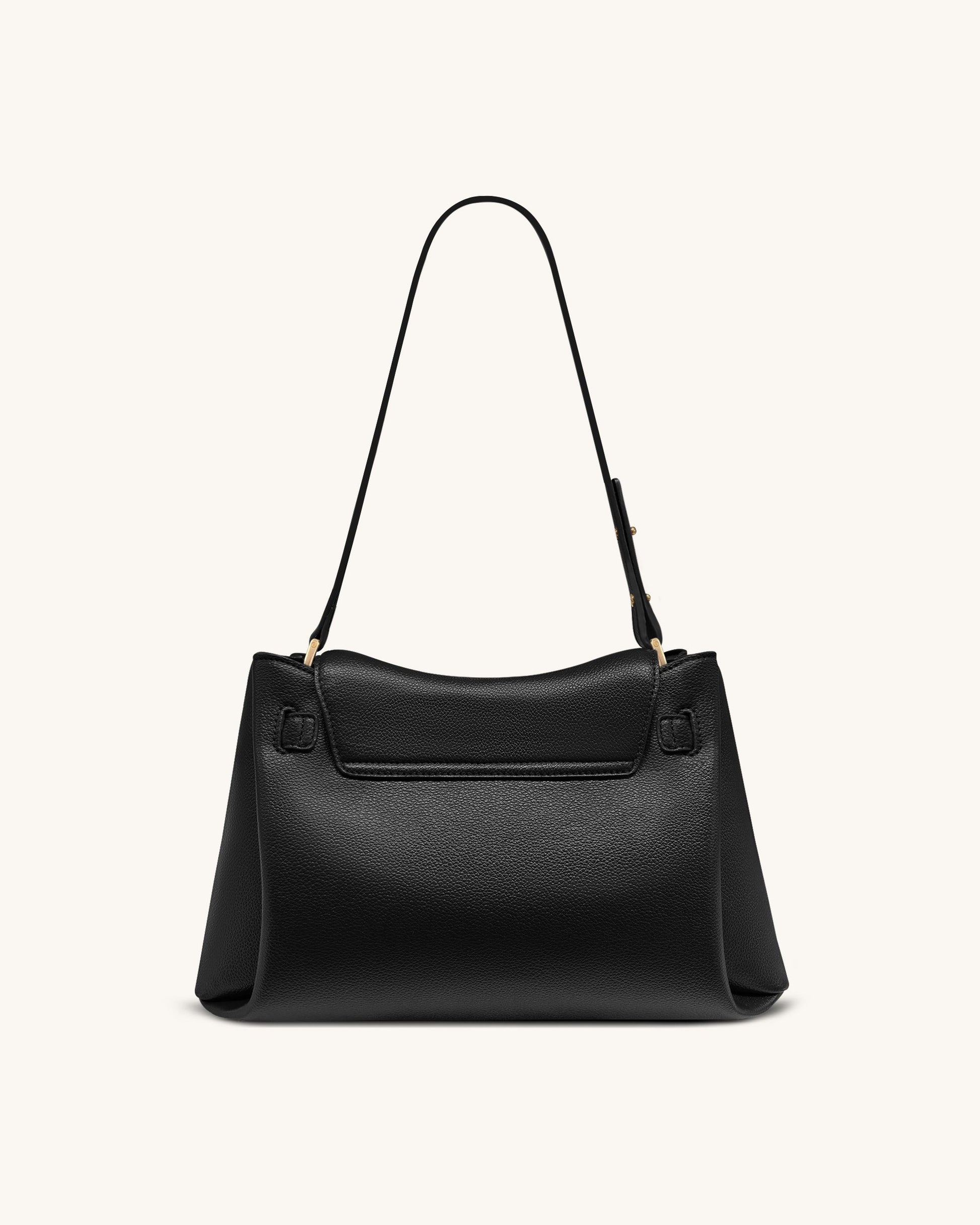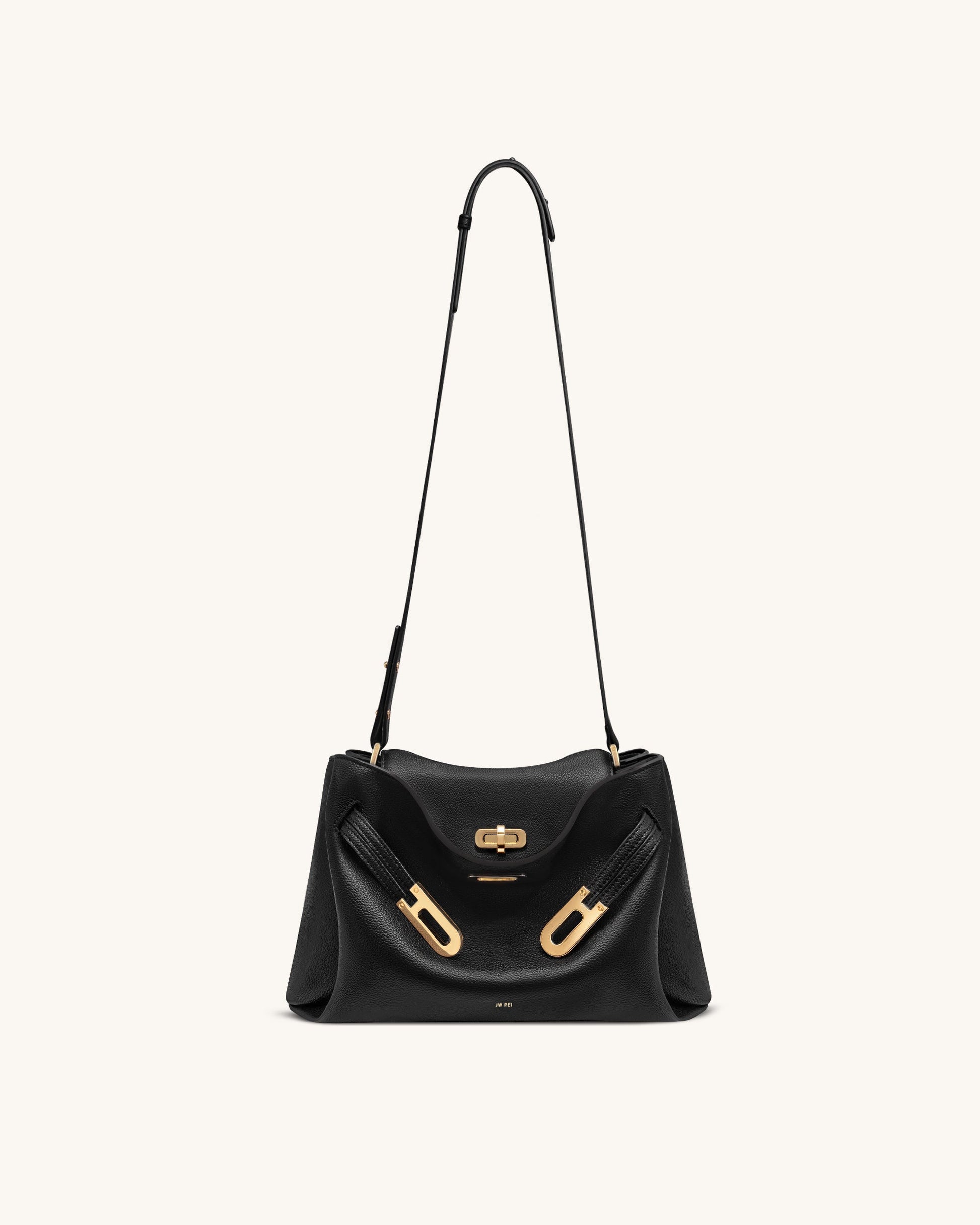 Borsa a Spalla con Doppia Fibbia e Effetto Ciottolato Rhea - Nero