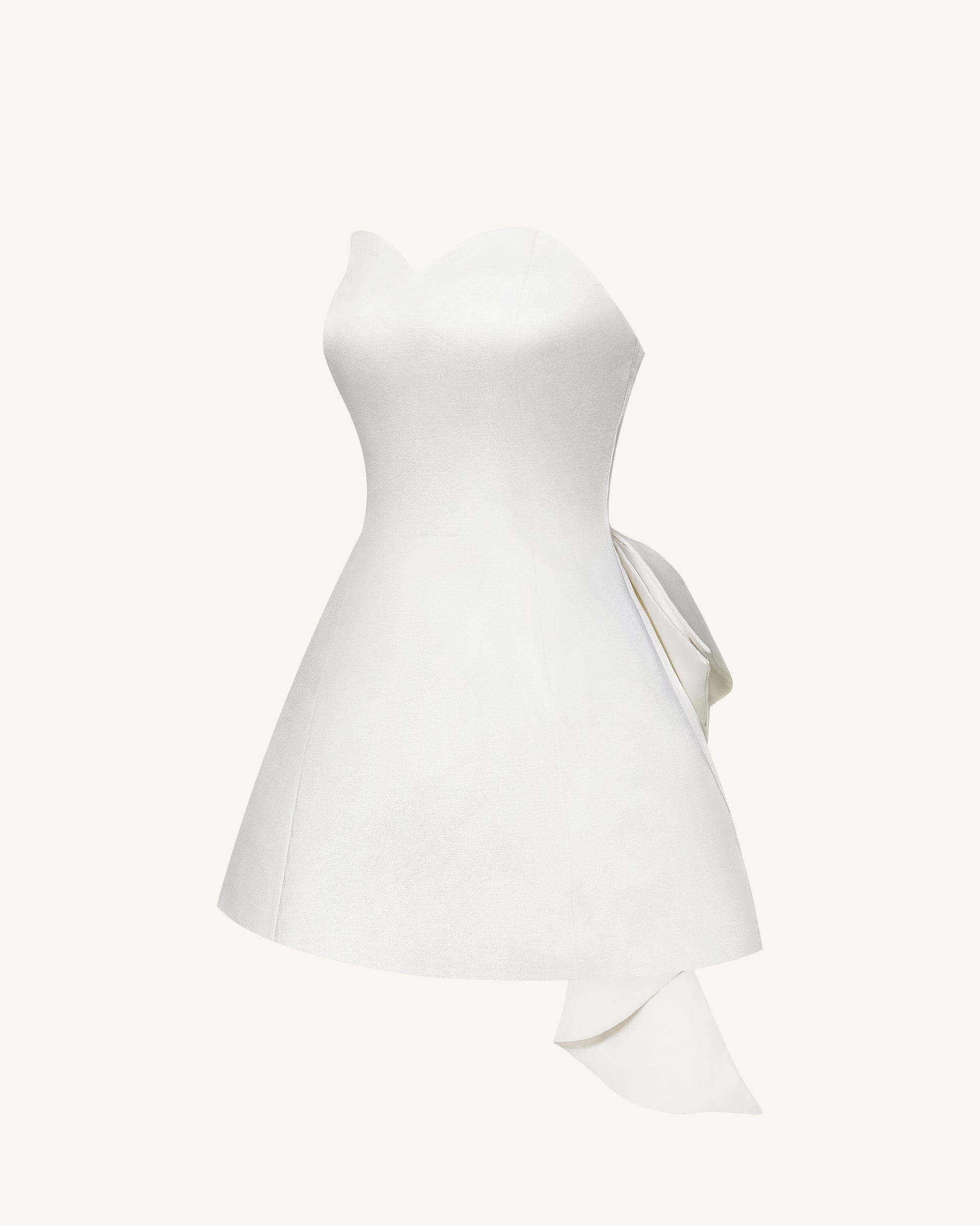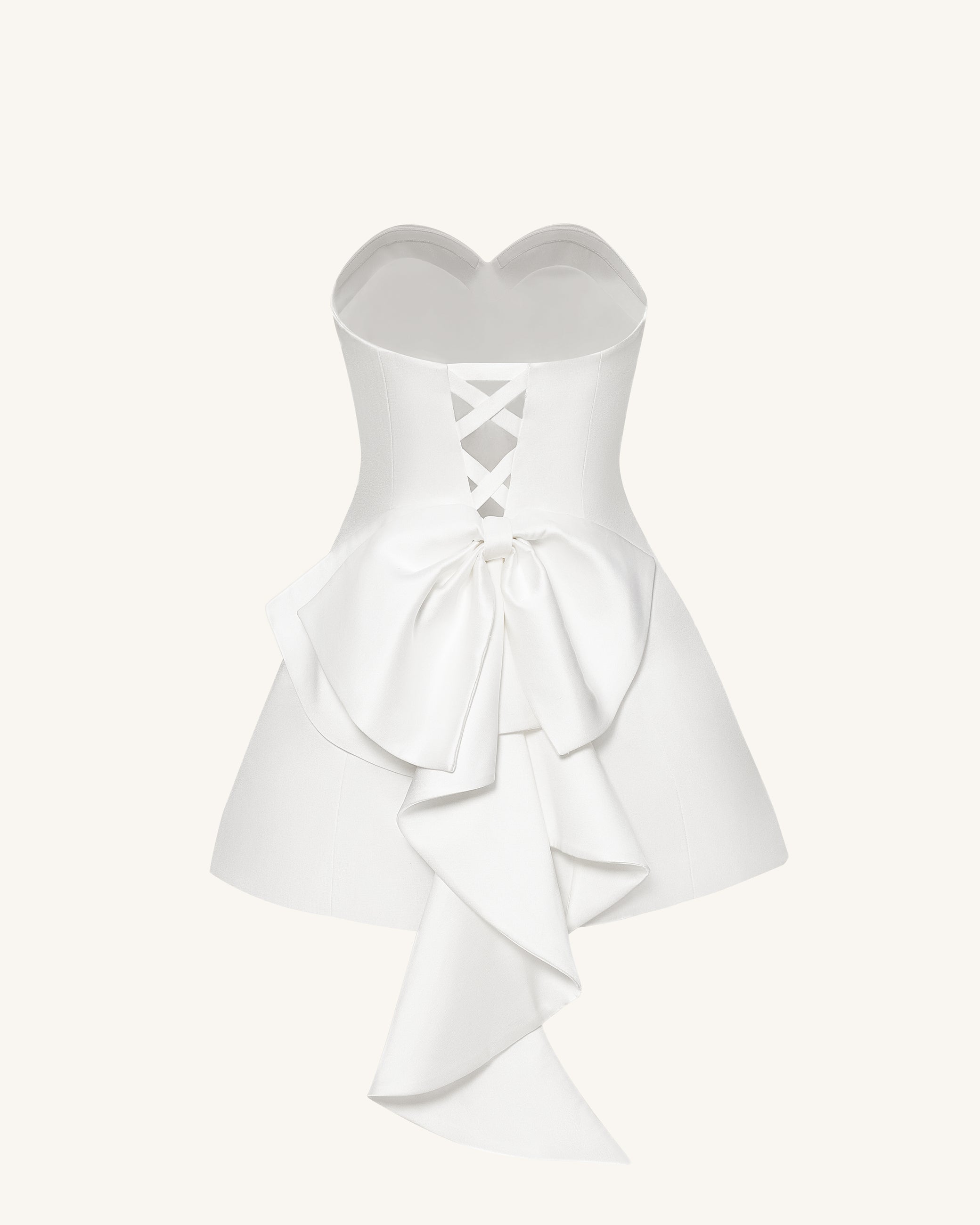 Abito corto a fascia in raso con fiocco posteriore - Bianco