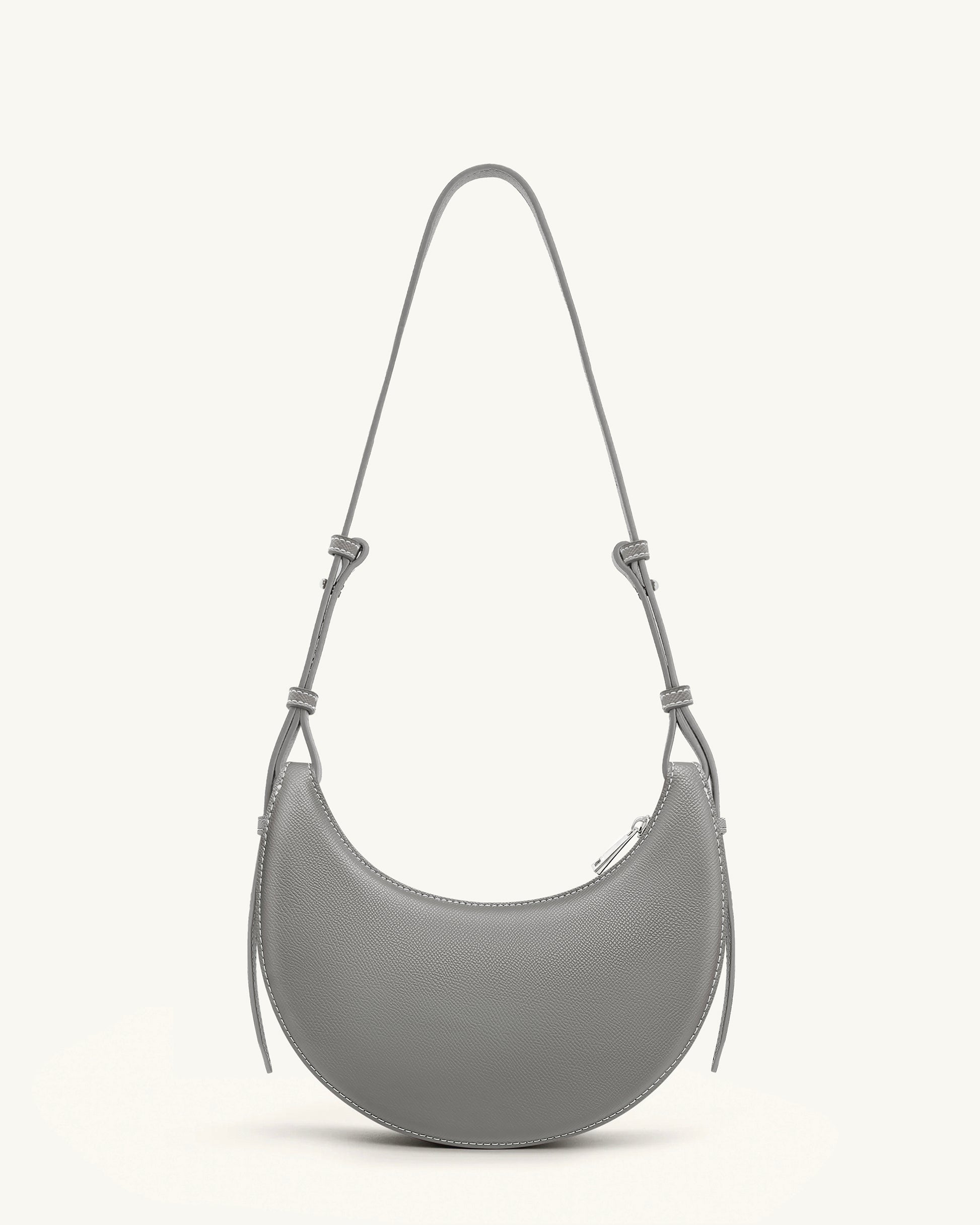 Questa borsa a spalla presenta una silhouette a mezzaluna in pelle vegana con texture. Dispone di una tasca interna a fessura e ferramenta in tonalità argento. La tracolla regolabile consente un comodo utilizzo a spalla o a tracolla.