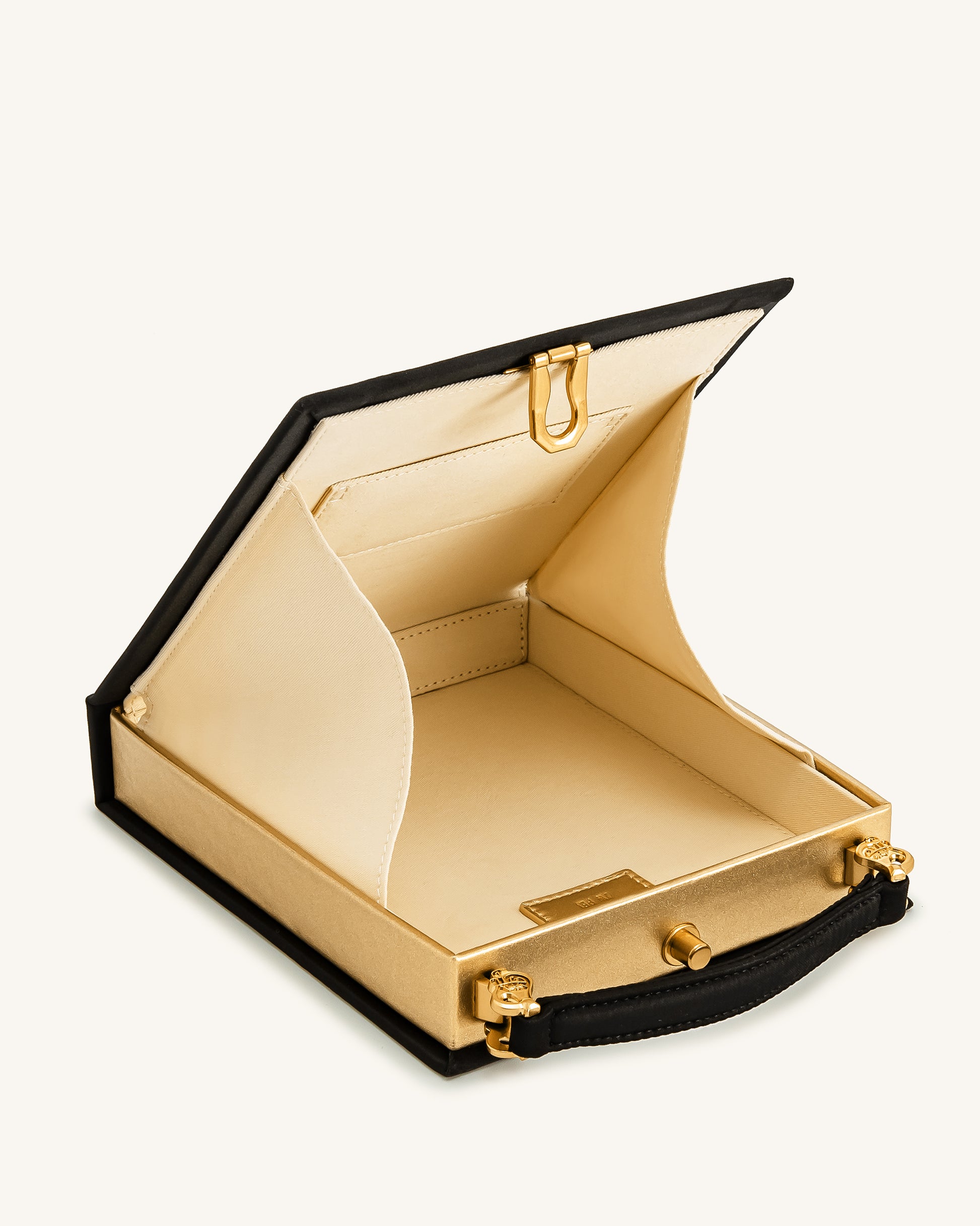 Taya Pochette a Forma di Libro con Motivo di Orchidea - Nero