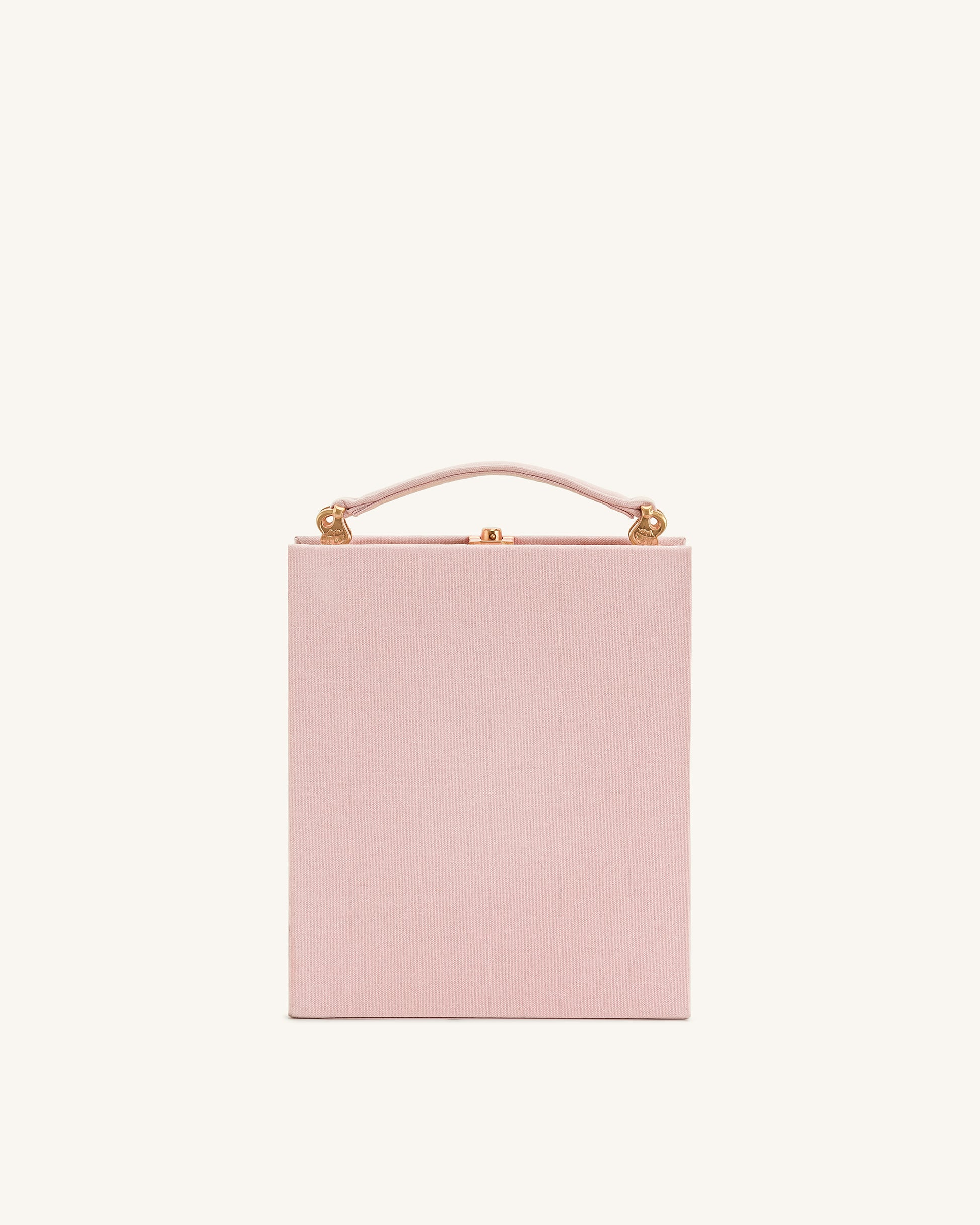 Elegante borsa strutturata con delicato ricamo di orchidee rosa su uno sfondo pastello tenue. Completata da un manico superiore e dettagli in metallo dorato, offre un look raffinato e artistico, perfetto per occasioni speciali o per uno stile quotidiano ricercato.