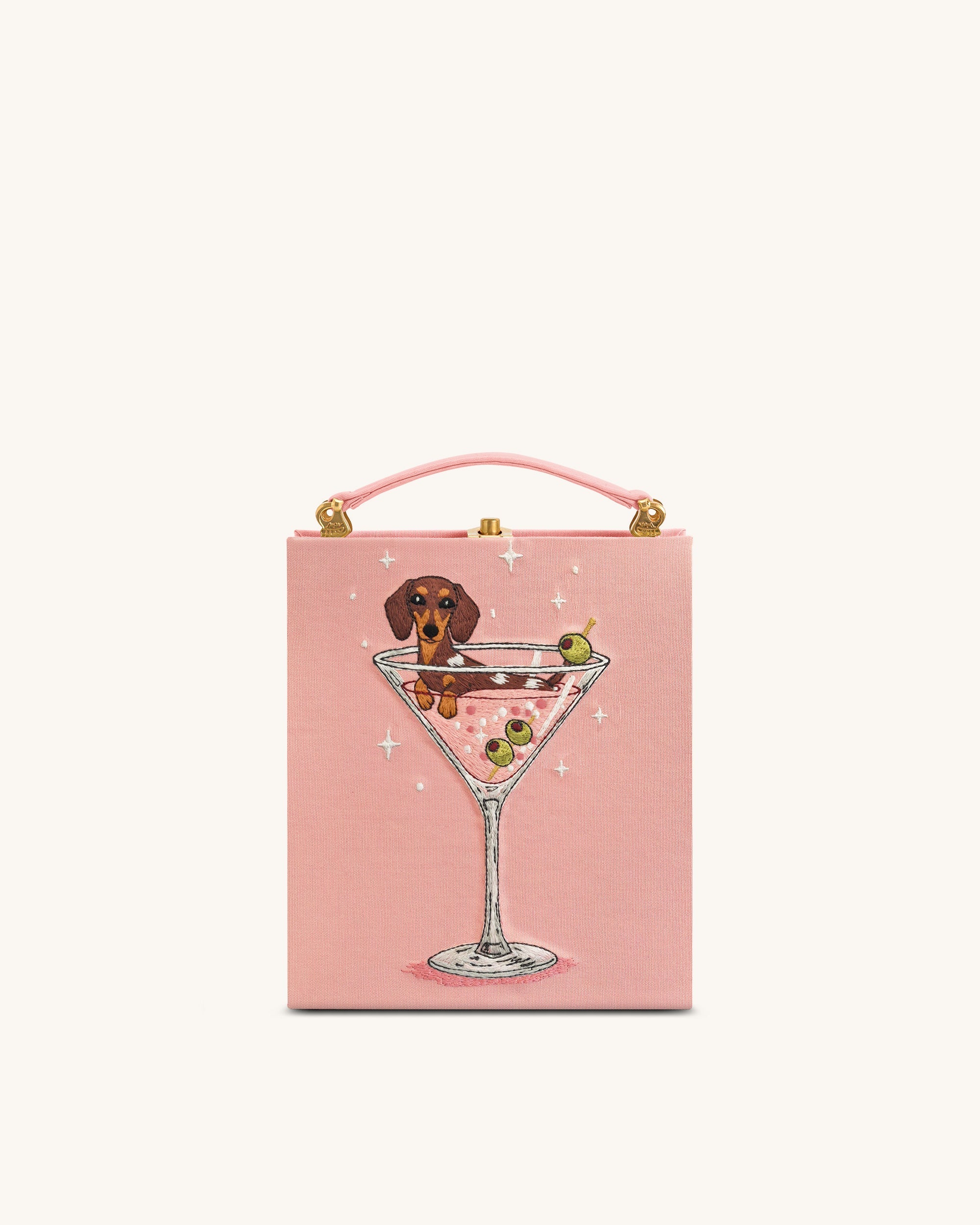 Pochette a forma di libro con motivo cucciolo e calice di vino Taya - Rosa