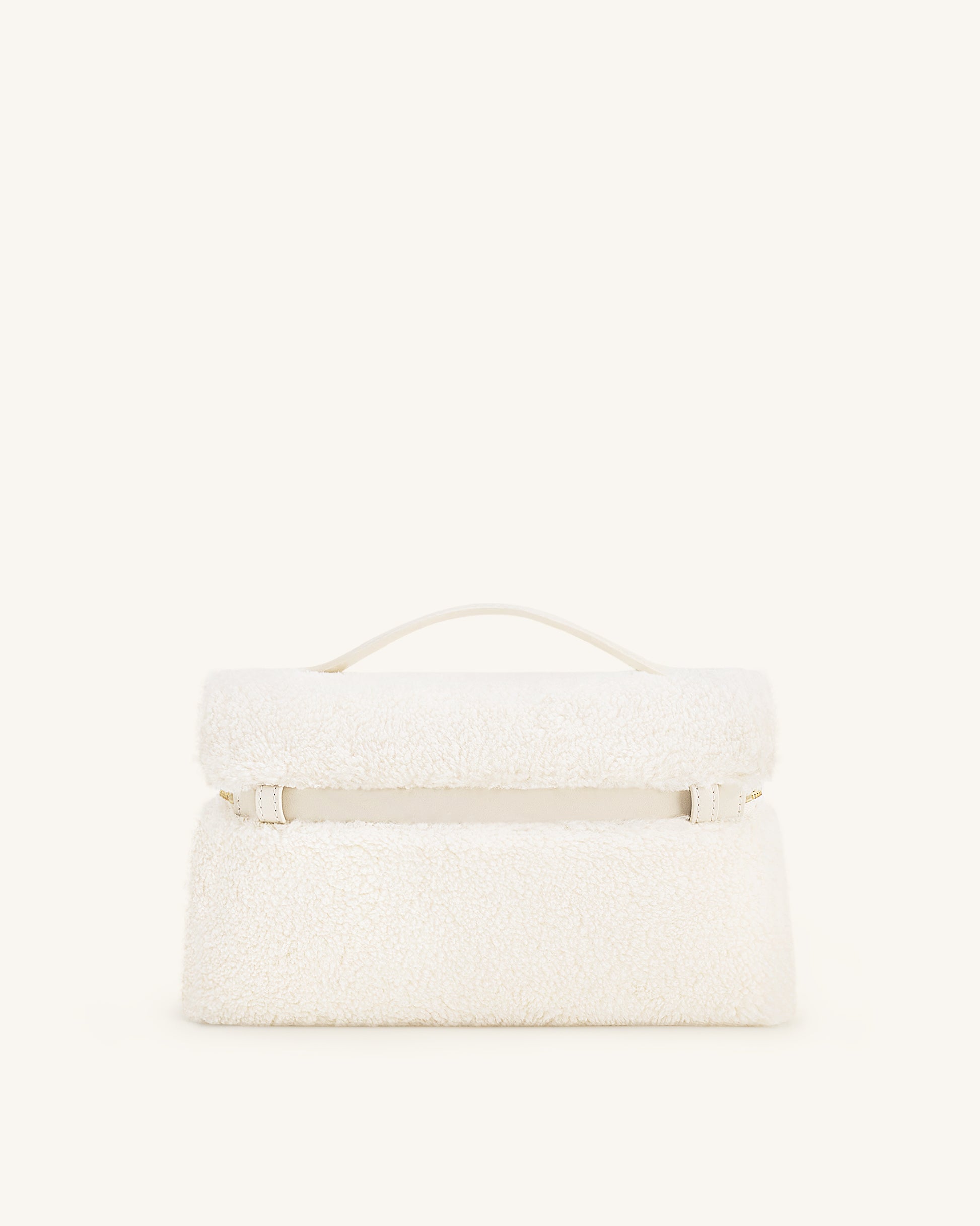 Accogliente, strutturata e moderna. Realizzata in morbida eco pelliccia con finiture in metallo dorato. Dotata di una tracolla singola, regolabile e rimovibile.