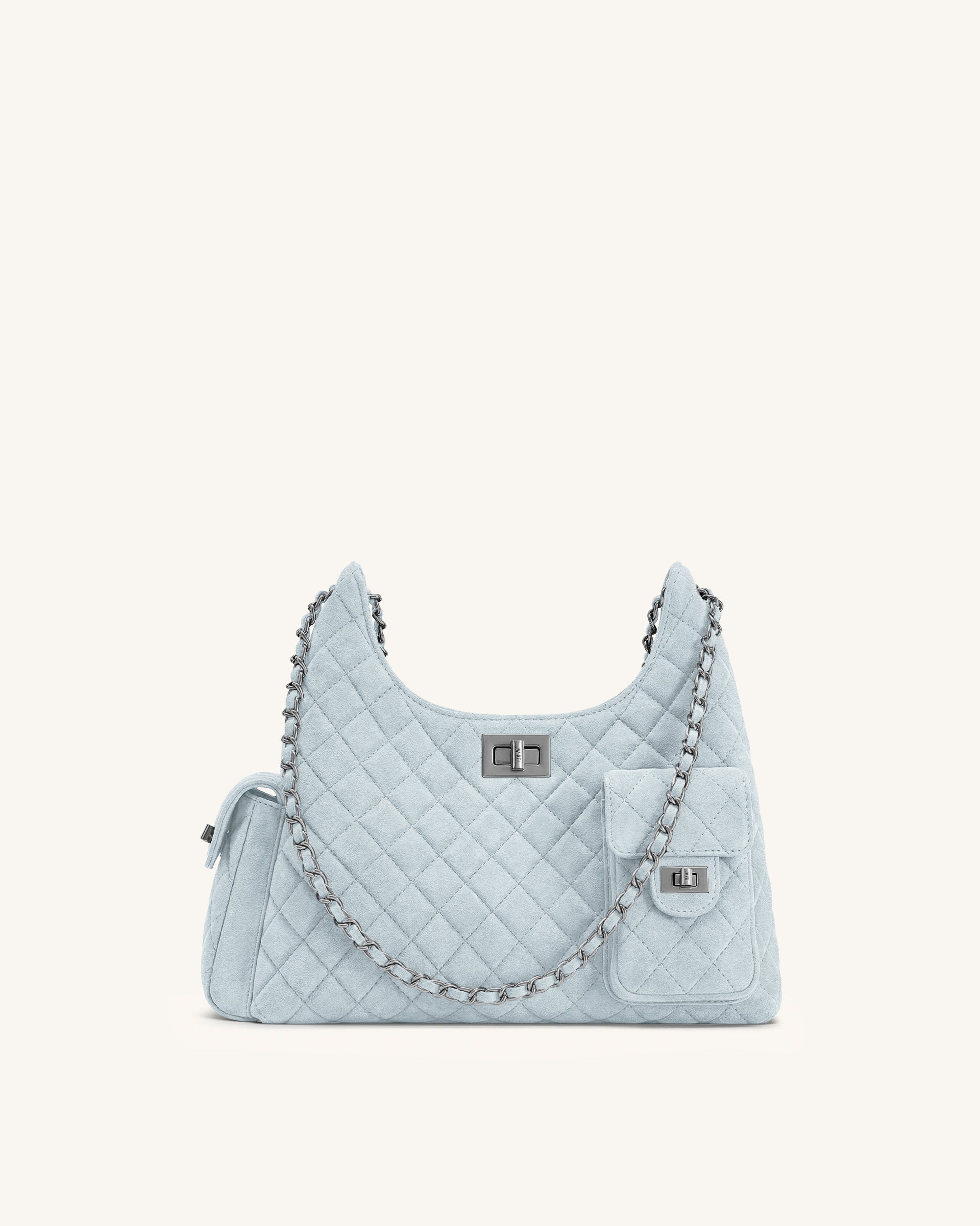 Vivian Borsa a spalla trapuntata in finta pelle scamosciata - Celeste